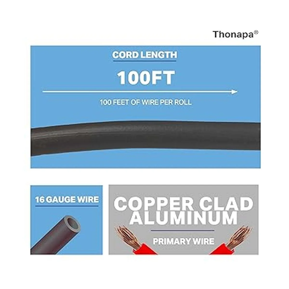 Protección de PVC: estos cables de calibre 16 están aislados con PVC flexible, lo que los hace resistentes al fuego, la abrasión, la luz solar y la corrosión química o electrolítica.