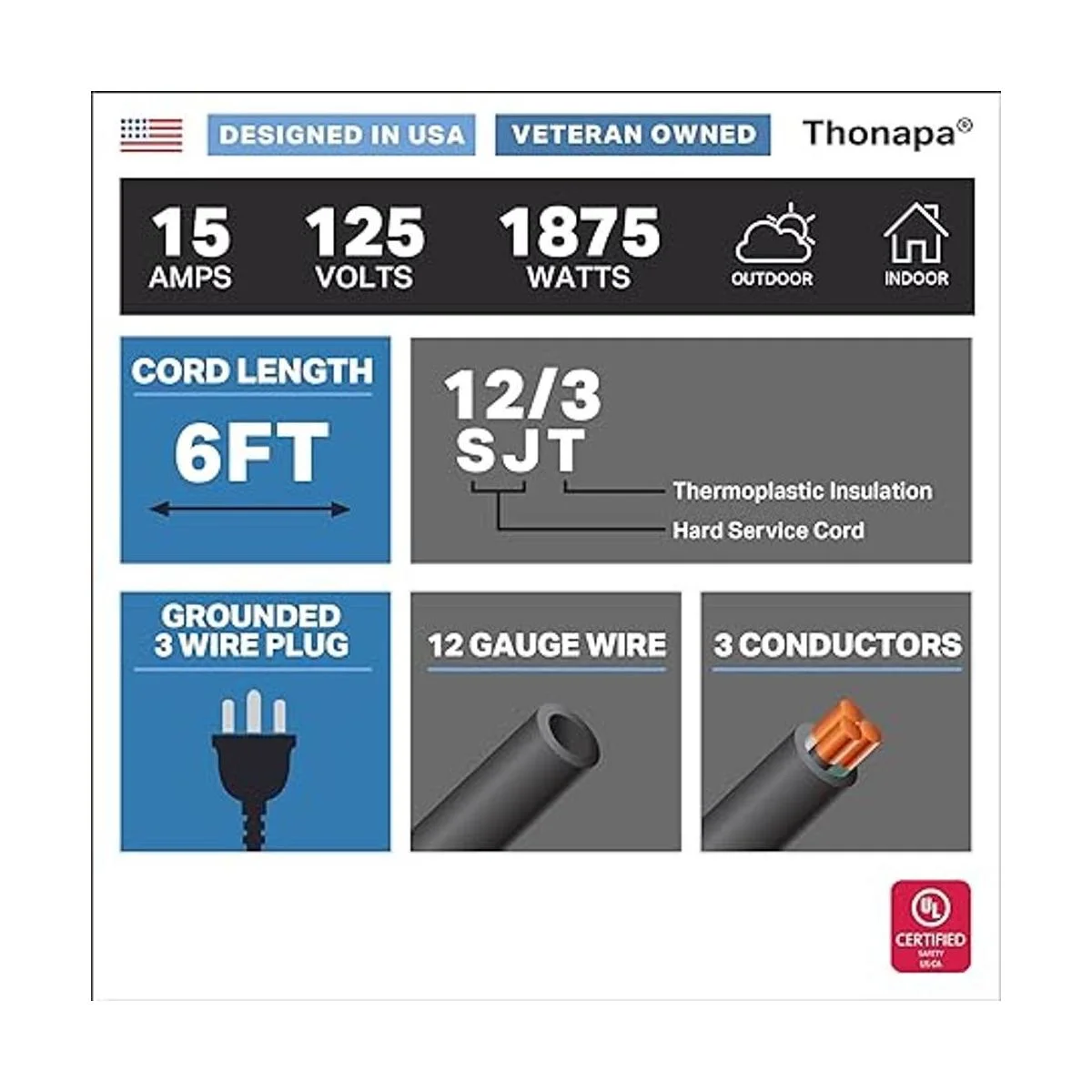 Perfecto para electrodomésticos principales: el cable de extensión de calibre 12 Thonapa es resistente y perfecto para alimentar electrodomésticos principales como aires acondicionados, lavadoras, secadoras, refrigeradores y herramientas eléctricas