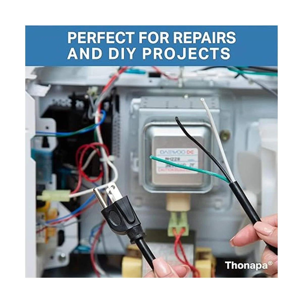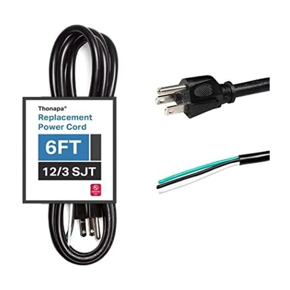 Thonapa Cable de repuesto de 6 pies con extremo abierto, cable de extensión de repuesto negro de 12 AWG, 123 SJT, NEMA 515P