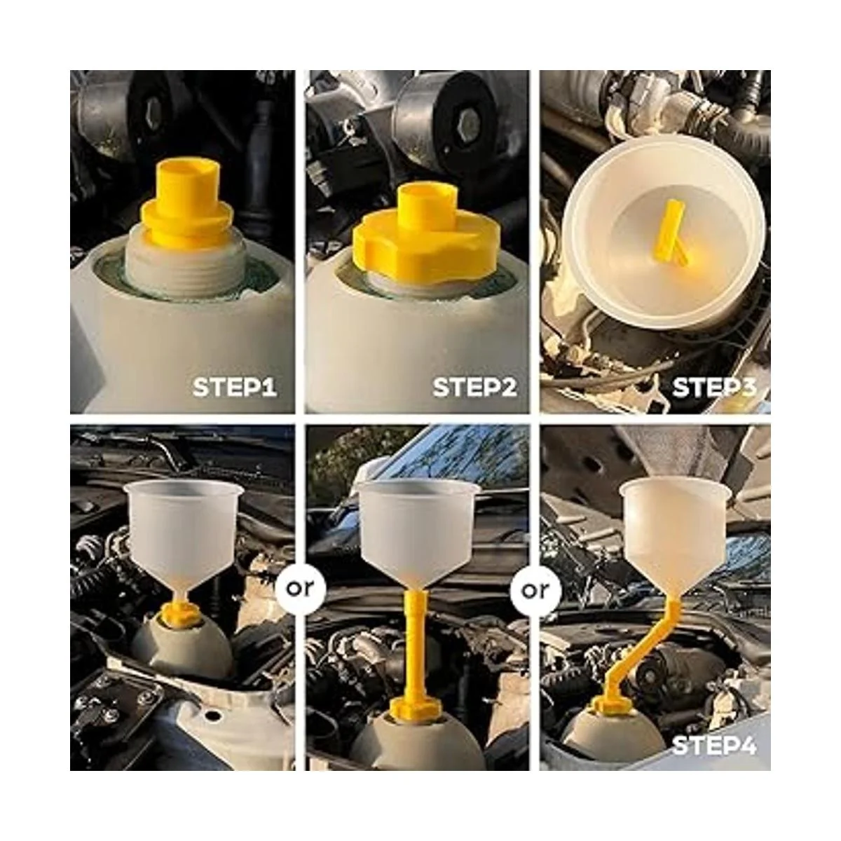 Thorstone Kit de embudo de refrigerante sin derrames, embudo de llenado de refrigerante de radiador sin derrames, purgador de embudo de radiador a prueba de derrames con adaptadores, purgador anticongelante automotriz para vehículos universales