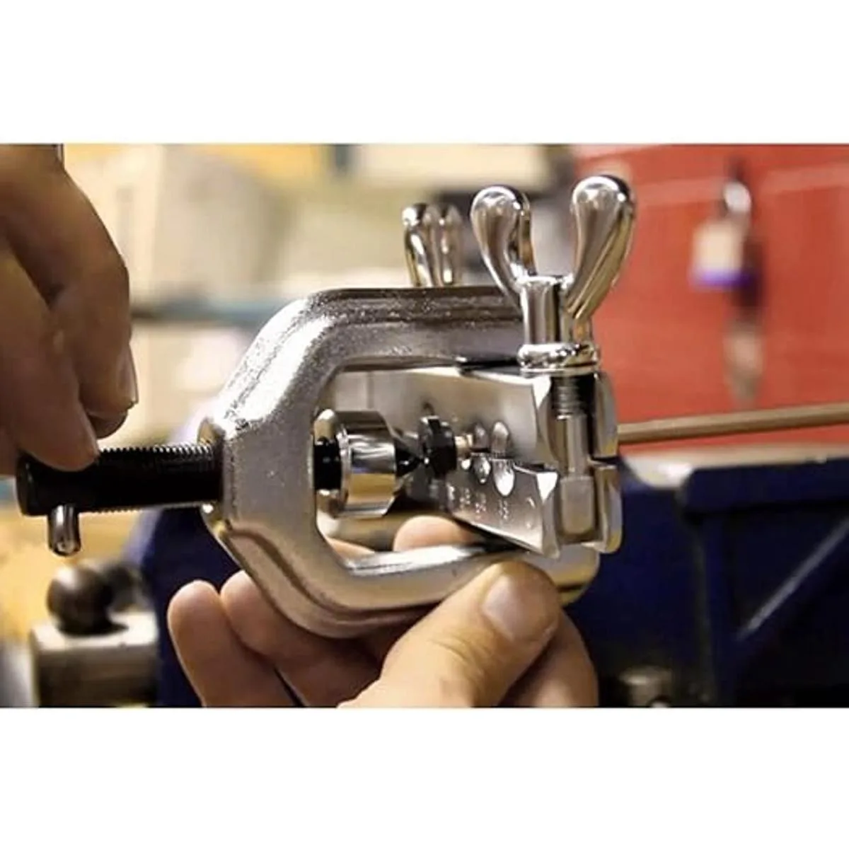 Juego todo en uno: 5 tamaños de adaptadores 3/16, 1/4, 5/16, 3/8 y 1/2 y un cortador para tubos de 1/85/8 hacen que la herramienta de acampanado sea versátil. Se puede utilizar en línea de freno, línea de latón de aire acondicionado, HAVC, etc.