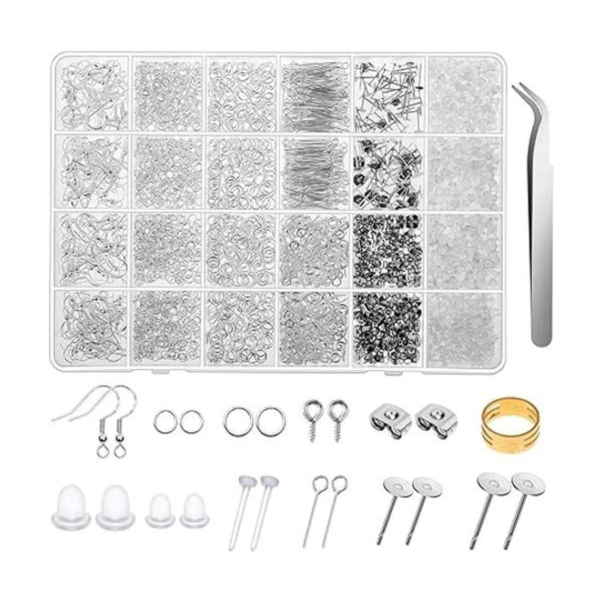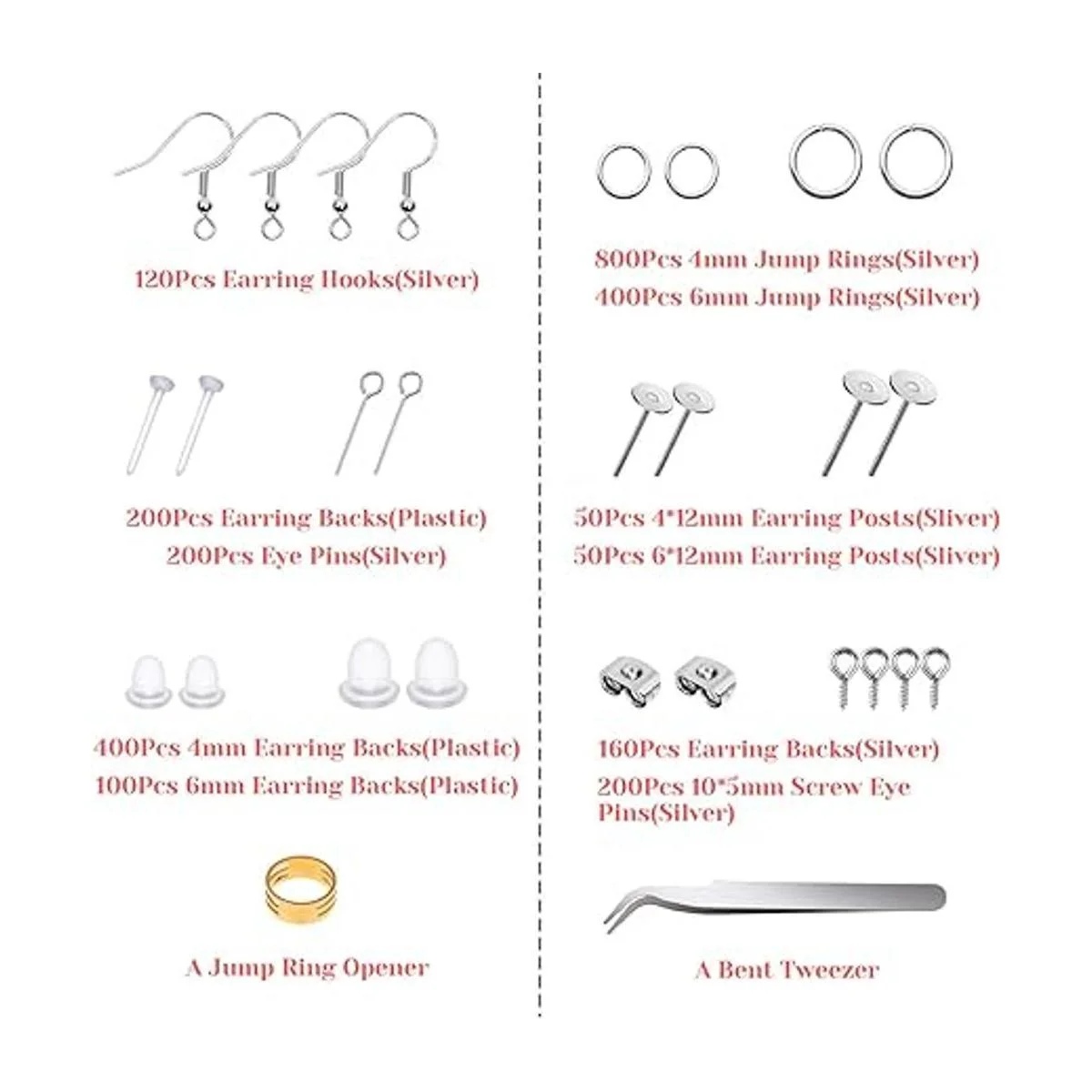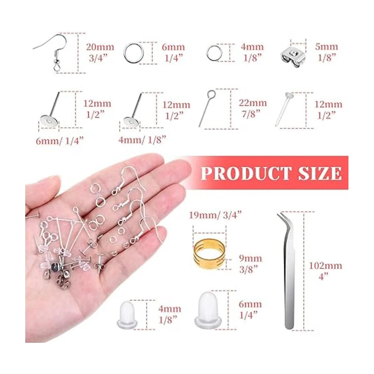 Thrilez Kit de fabricación de aretes hipoalergénicos, kit de suministros de aretes de 3080 piezas incluye ganchos para aretes, parte trasera de aretes, anillos de salto, pasadores de ojos, postes de aretes y herramientas para hacer y reparar pendientes