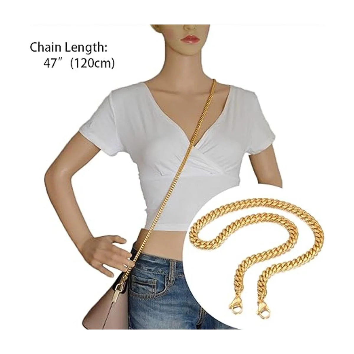 TIASRI Correa de cadena de hierro de 47 pulgadas, para bolso de mano, accesorios para bolsos, correas de hombro, correa de repuesto, acero inoxidable dorado