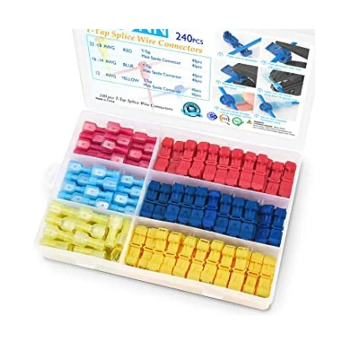 TICONN 240 conectores de cable TTap, terminales de cable eléctrico de empalme rápido autopellizcante, kit surtido de terminales de pala de desconexión rápida machos aislados con caja de almacenamiento 240