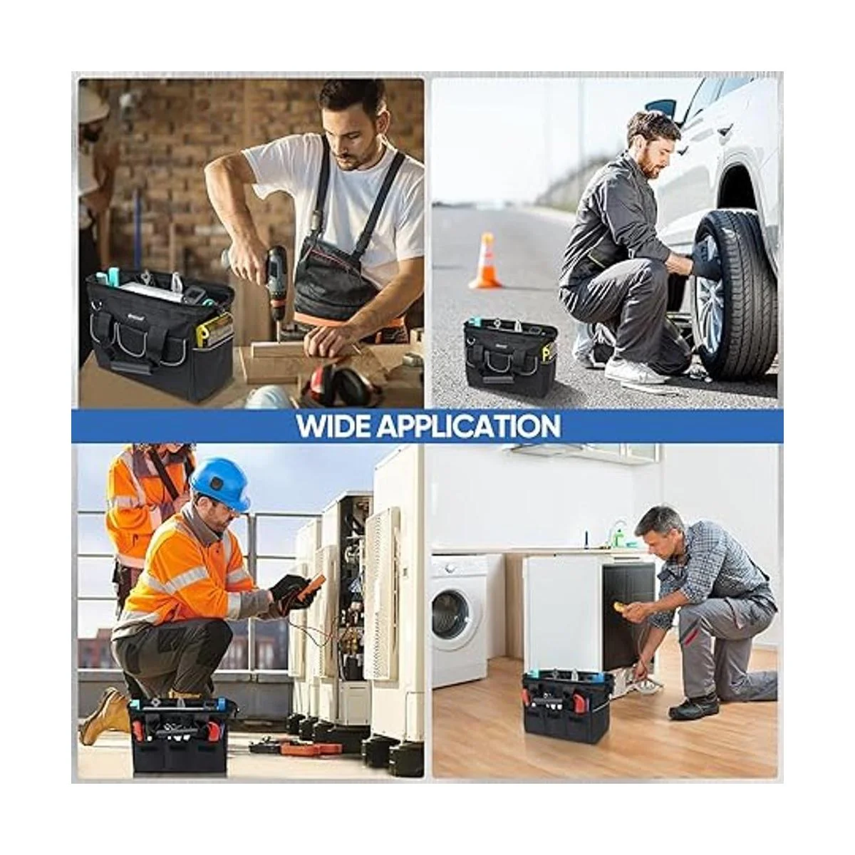 Amplia aplicación: diseño de uso general para que puedas sacar el máximo provecho de este organizador de herramientas. No importa si eres un propietario o un profesional que lleva herramientas eléctricas, mecánicas, de yeso, HVAC, de construcción o de cerrajero, encontrarás un lugar para esta versátil bolsa de herramientas
