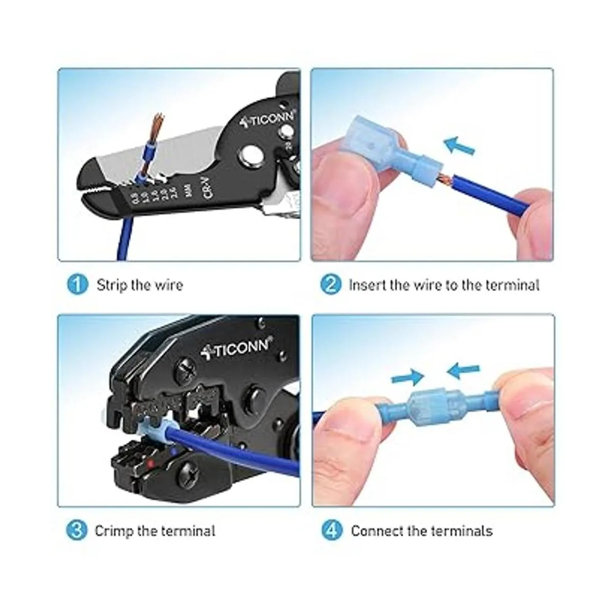 Durabilidad: Cada terminal en el juego de conectores eléctricos tiene latón estañado grueso que resiste la corrosión para mantener el cable ajustado al engarzarlo.