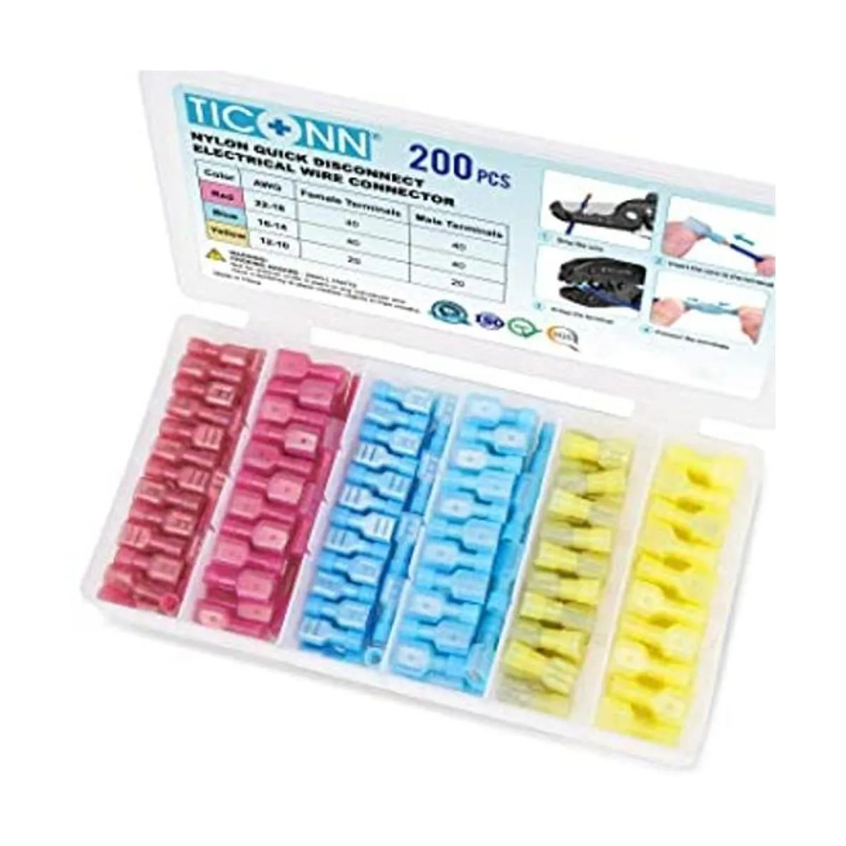 TICONN Juego de conectores con desconexión rápida y horquilla de nailon, terminales eléctricas aisladas, juego con variedad de terminales de horquilla macho y hembra