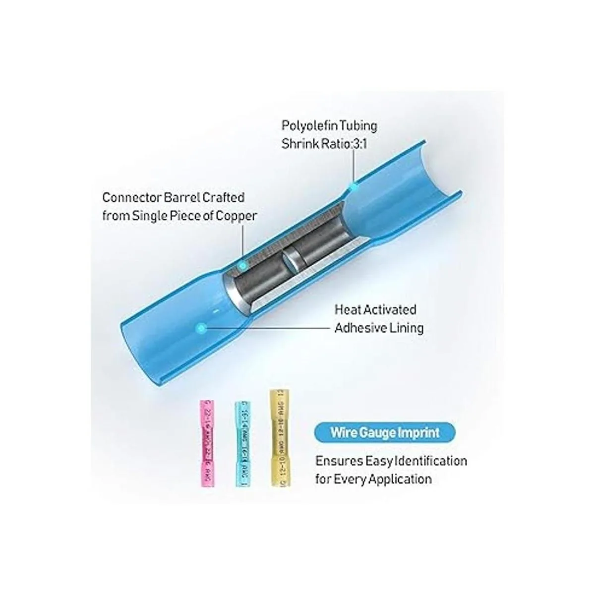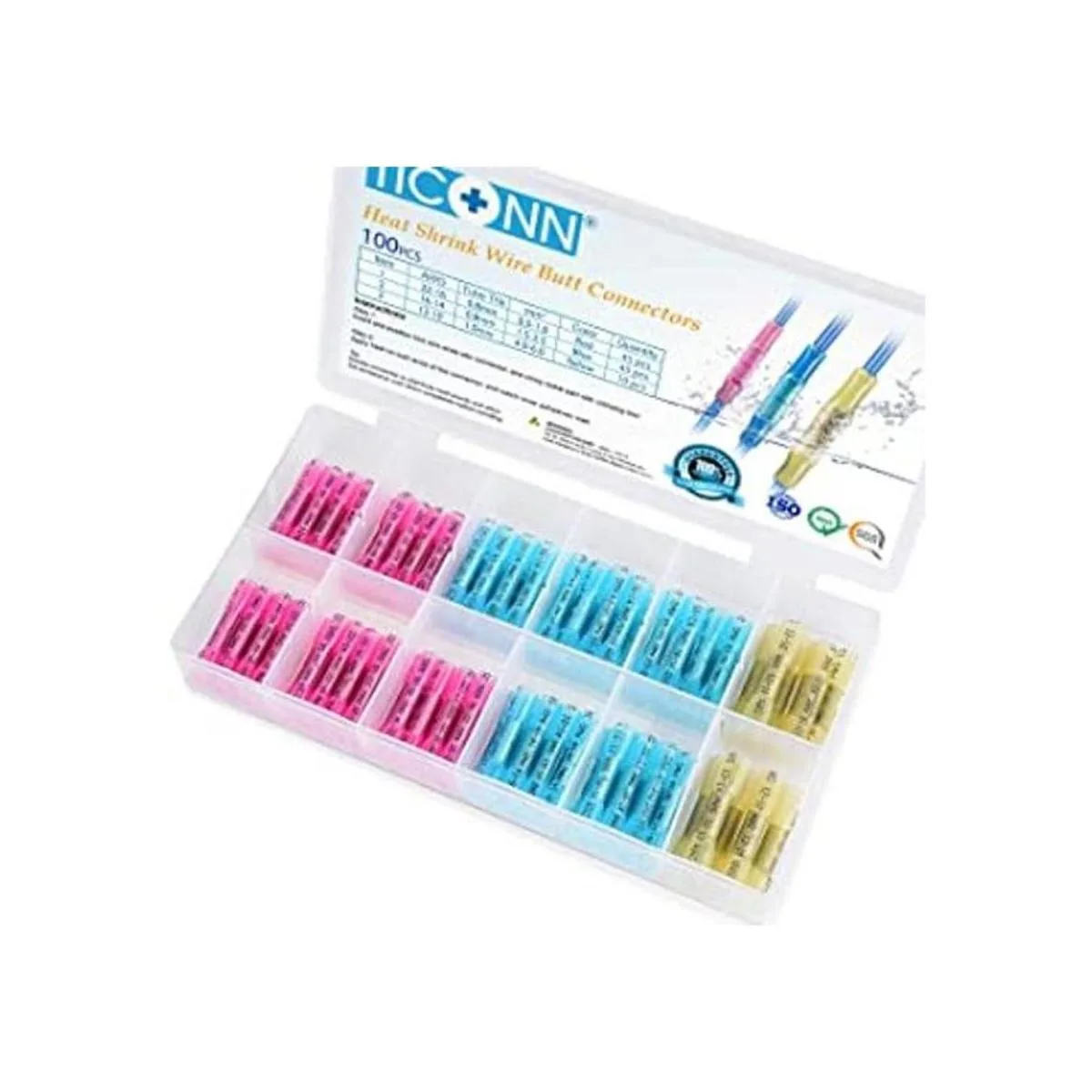 TICONN Kit de 100 conectores termorretráctiles a prueba de agua, terminales de crimpado de alambre automotrices eléctricos y marinos, empalme trasero 3 colores 3 tamaños 100 unidades