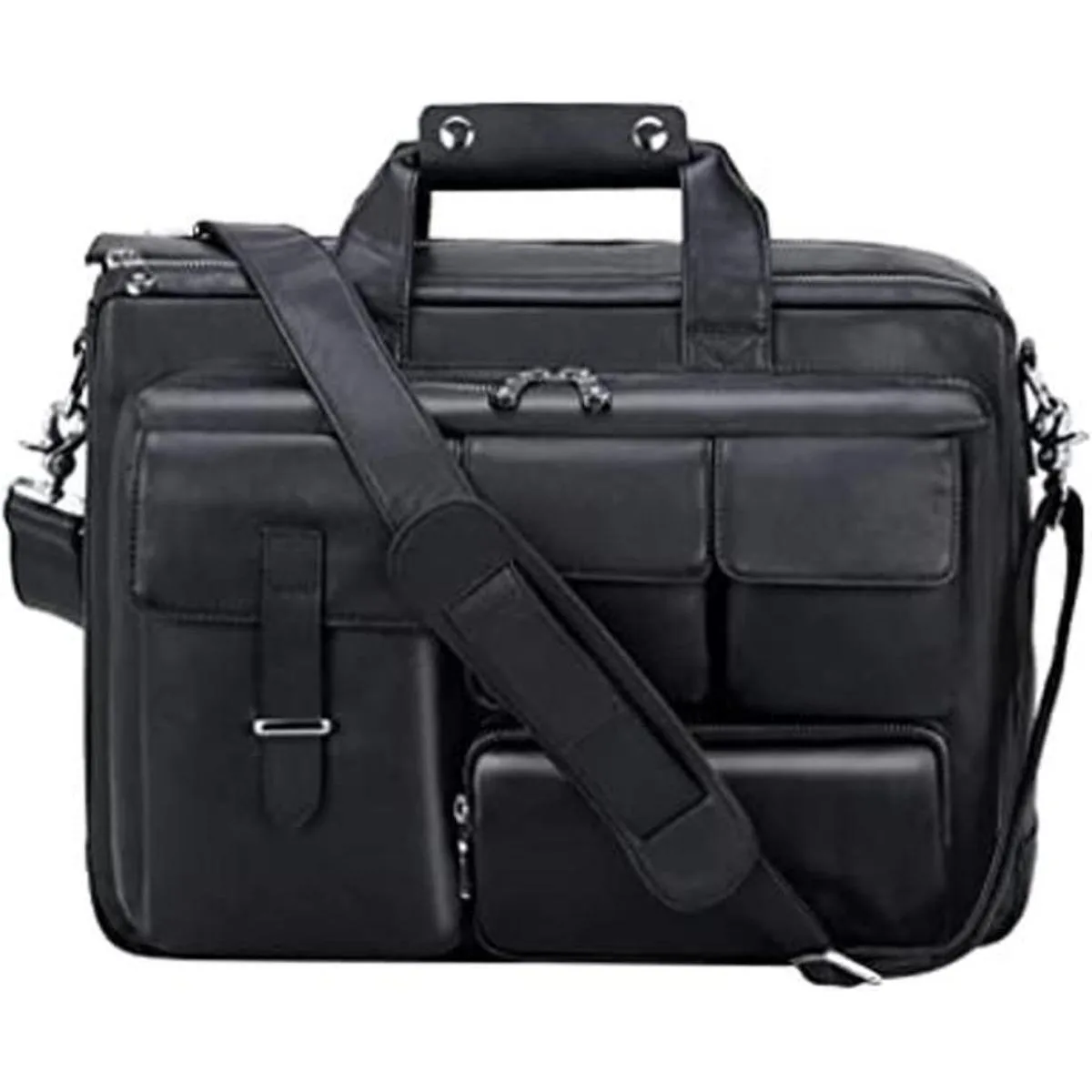 Multifunción: este maletín para hombre tiene múltiples compartimentos para satisfacer todas tus necesidades. Viene con cuatro bolsillos delanteros, un bolsillo frontal multifuncional con cremallera, un gran compartimento principal y un bolsillo trasero con cierre magnético. El compartimento para portátil puede contener una laptop de 15.6 pulgadas, y el compartimento principal puede contener una laptop de 17 pulgadas/17.3 pulgadas.