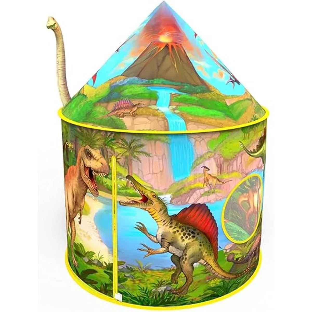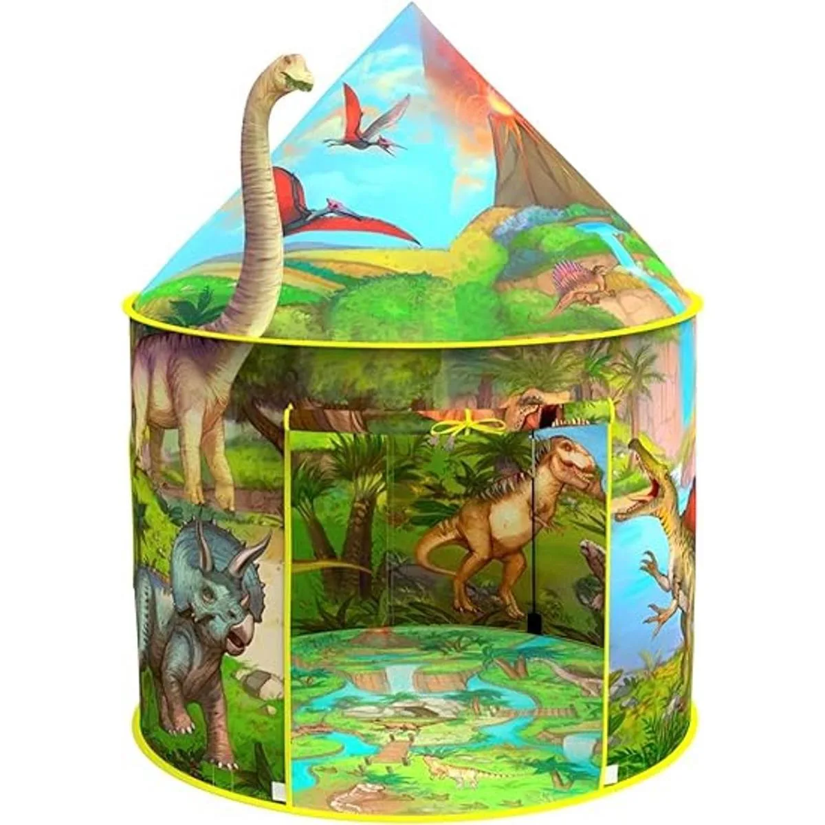 Tienda de campaña definitiva: ilustraciones detalladas vibrantes en el exterior e interior de la tienda de campaña que permitirán que la imaginación de tu hijo se suba y rugya Esta tienda de campaña se convertirá en la pieza central de la tierra de juego jurásica de tu hijo. Tendrán un mundo prehistórico de diversión rodeado de más de 20 dinosaurios y 12 especies. El suelo ilustrado cuenta con un parque para emocionantes aventuras y fomenta el juego cooperativo.