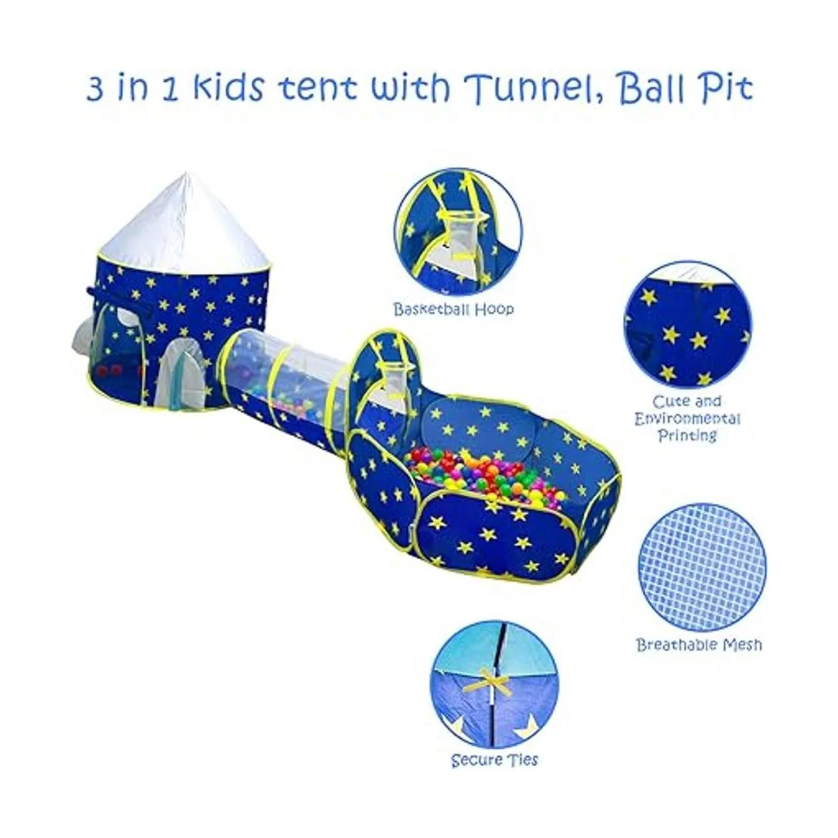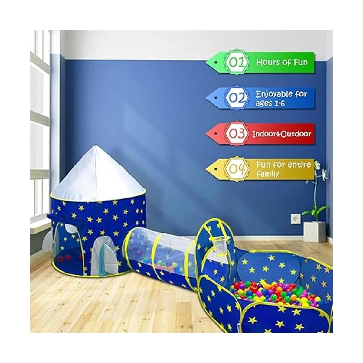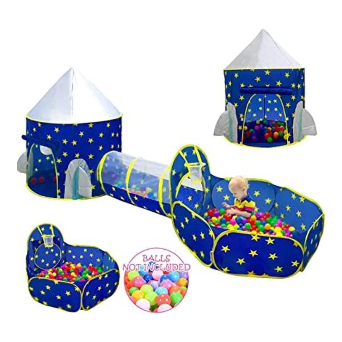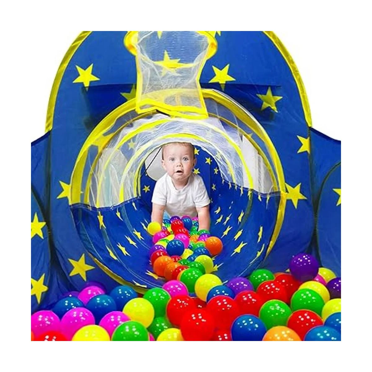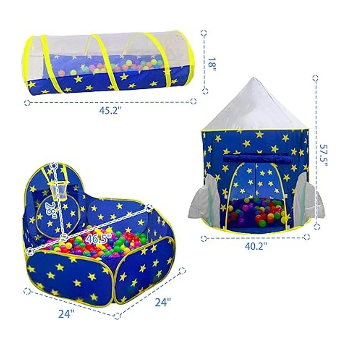 Diversión ilimitada para los niños: El diseño de conexión 3 en 1 entre la casa para niños, el túnel y la piscina de pelotas trae más diversión para los niños. Los niños podrán ocultarse, gatear, saltar y tener su espacio en la tienda de campaña. Esta tienda de campaña 3 en 1 para juegos de cohetes ha recibido el tema de una estación espacial. La tienda actúa como un nave de cohetes, transportándote a través del túnel al lugar de juego y entretenimiento
