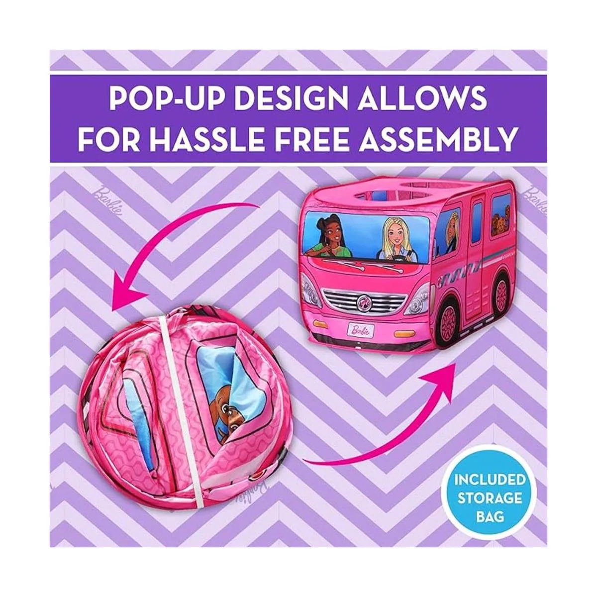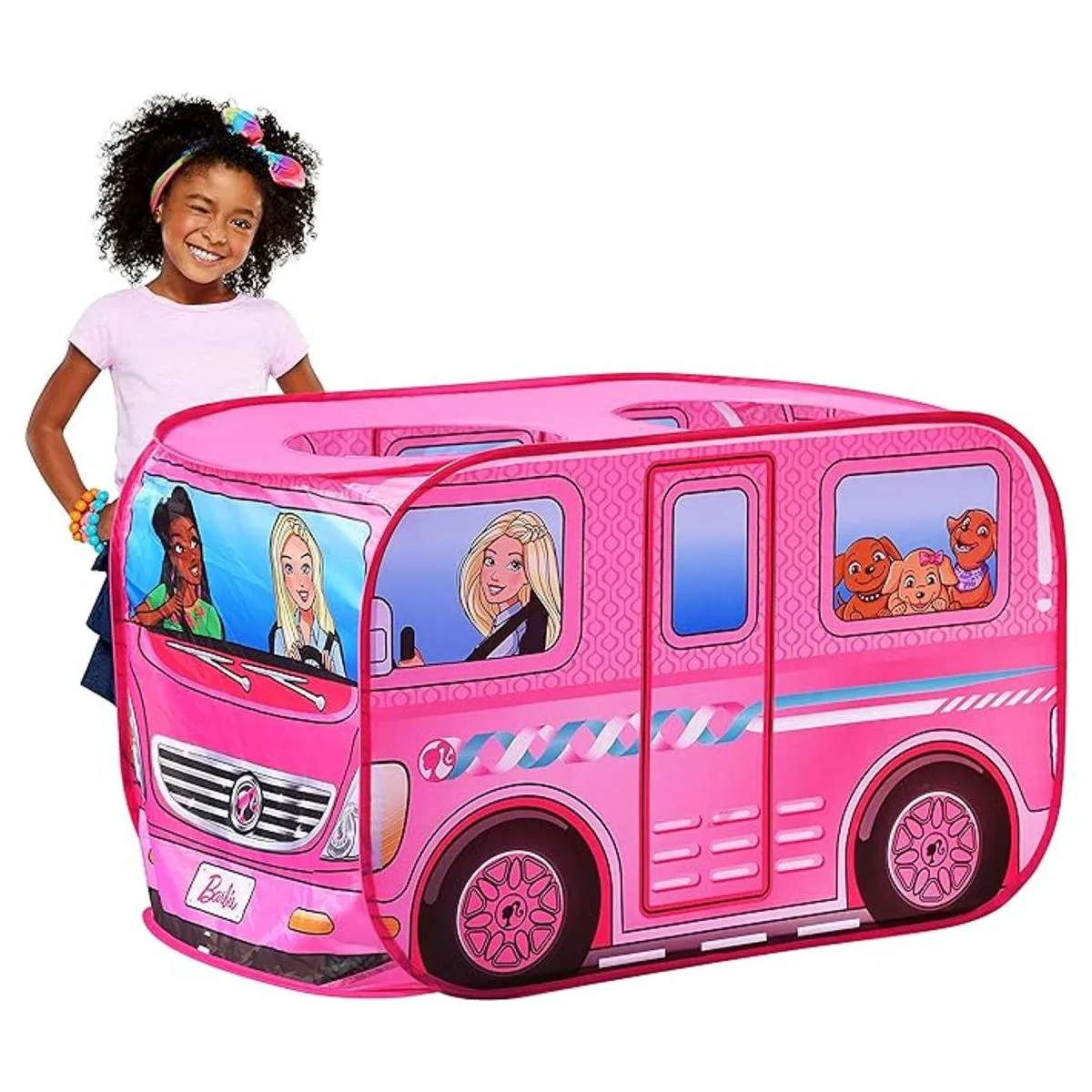 Tienda de campaña desplegable Barbie Camper, casa de ensueño rosa para niños, bolsa de transporte incluida, exclusiva de Amazon, Sunny Days Entertainment