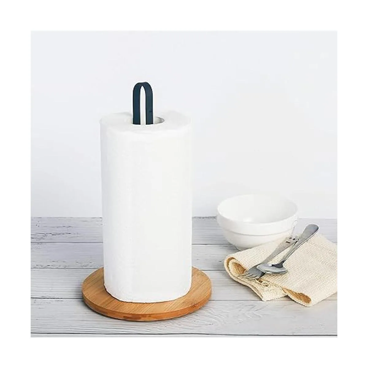 TIEYIPIN Soporte para toallas de papel, soporte para rollo de encimera con base de bambú de madera antideslizante para cocina, armario, mesa