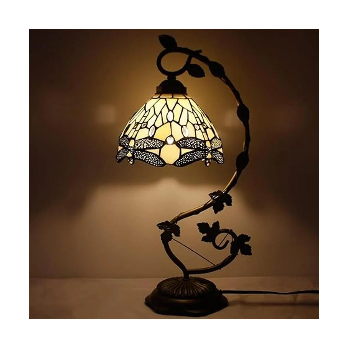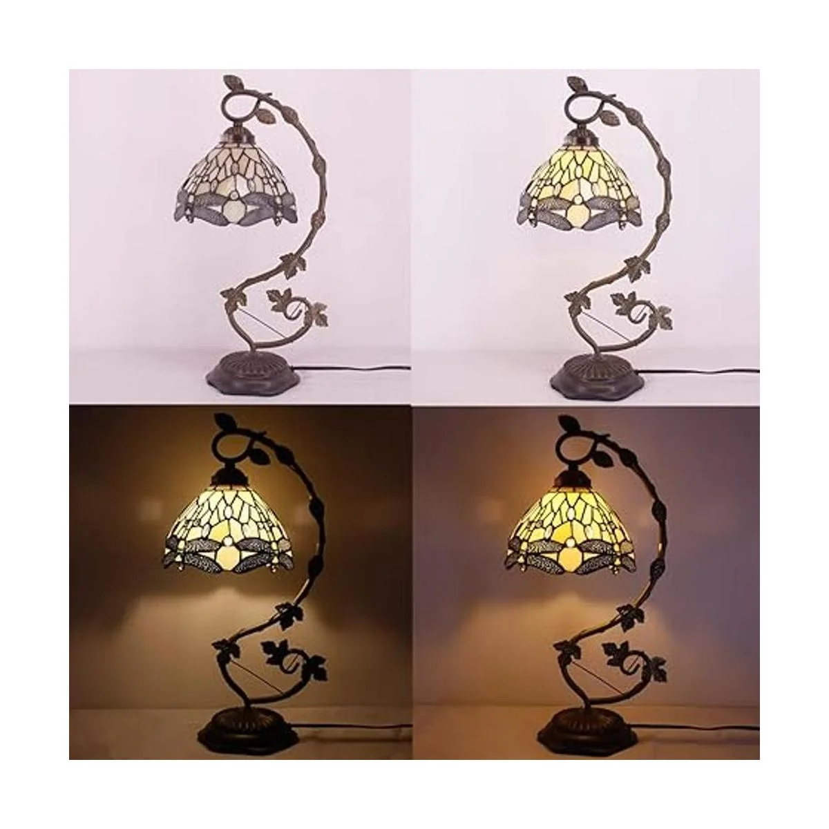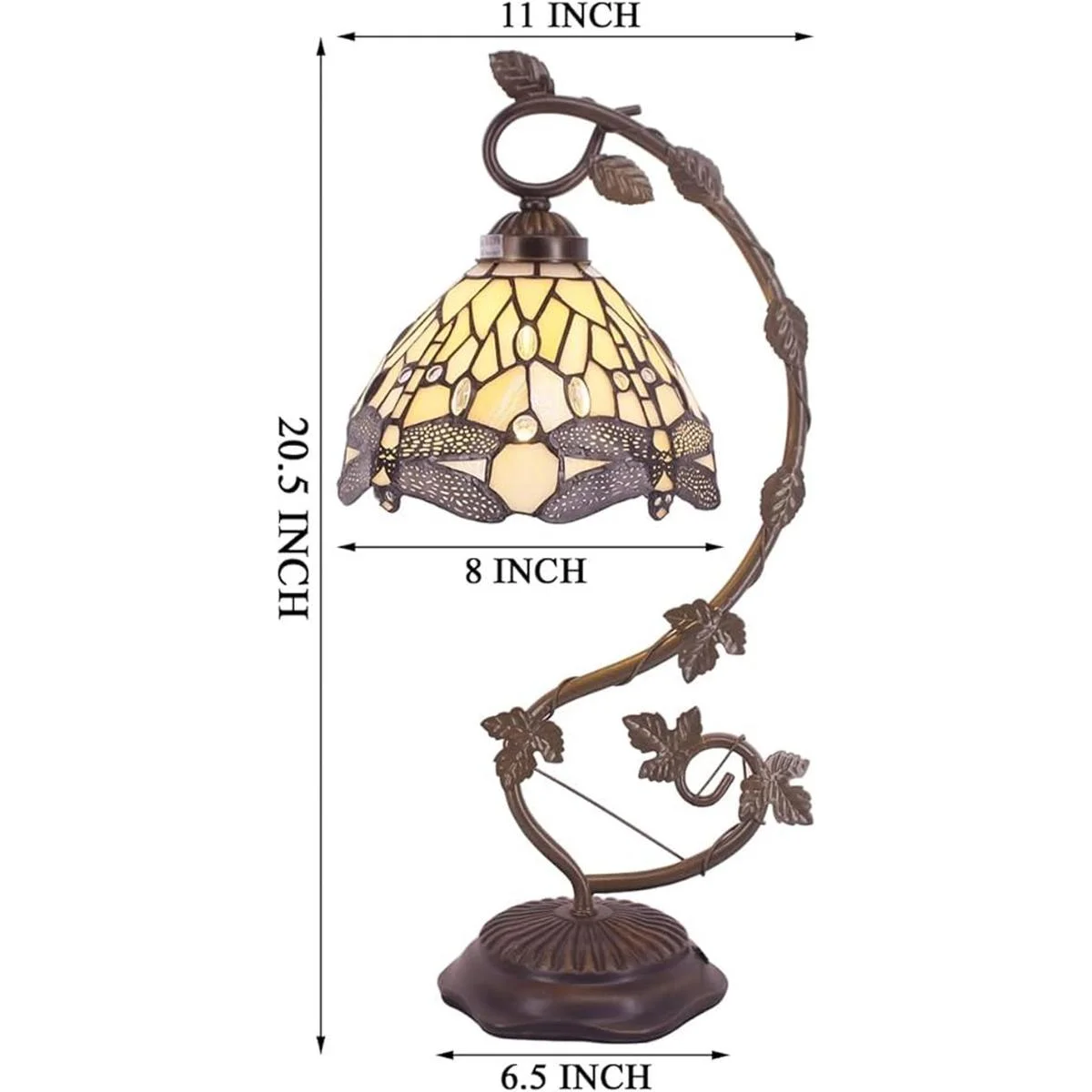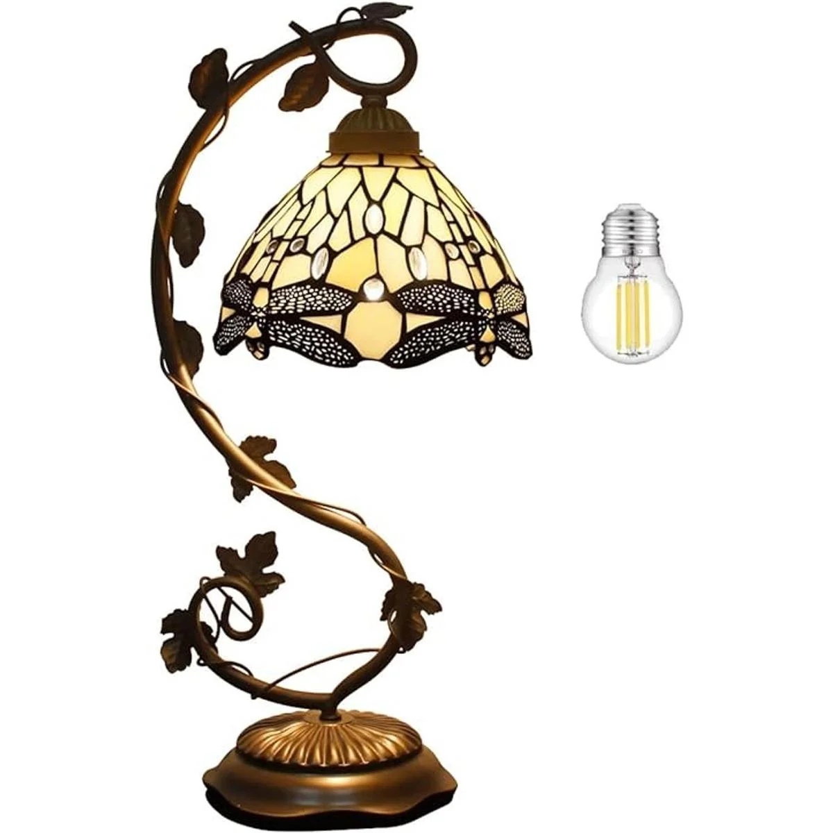 Tiffany Lámpara banquera de noche de vitrales, 21 pulgadas, base de hoja de metal, lámpara de mesa de libélula, para espacios pequeños, lectura de dormitorio, sala de estar, mesita de noche, luz de escritorio victoriana, bombilla LED WERFACTORY incluida