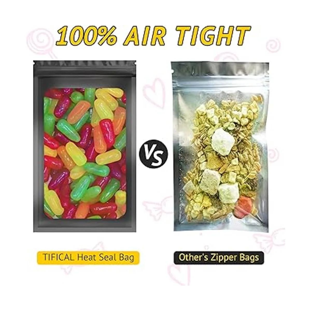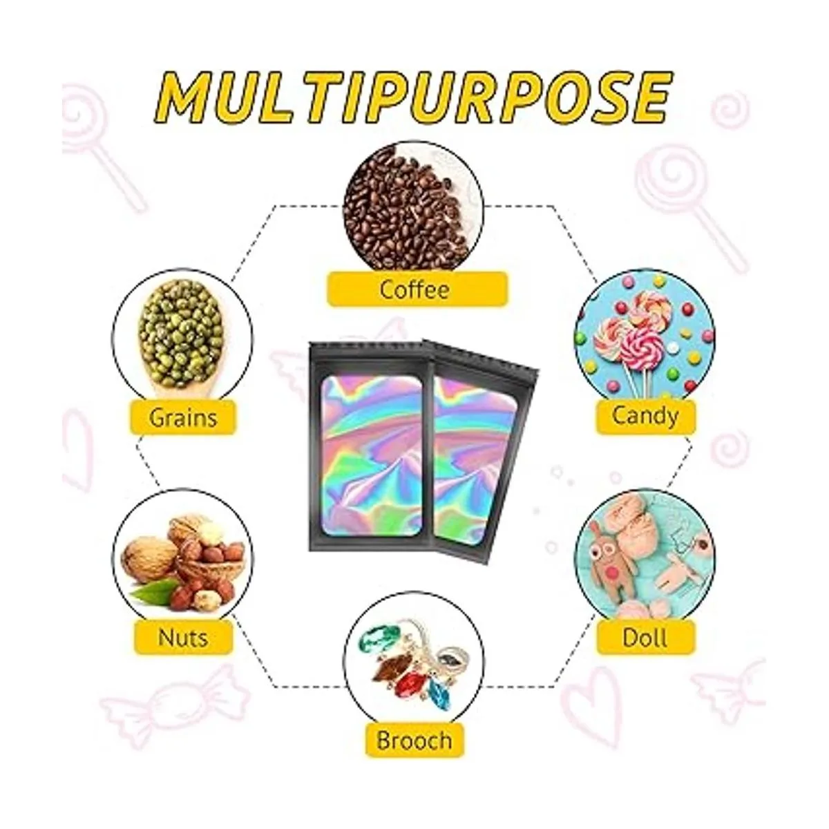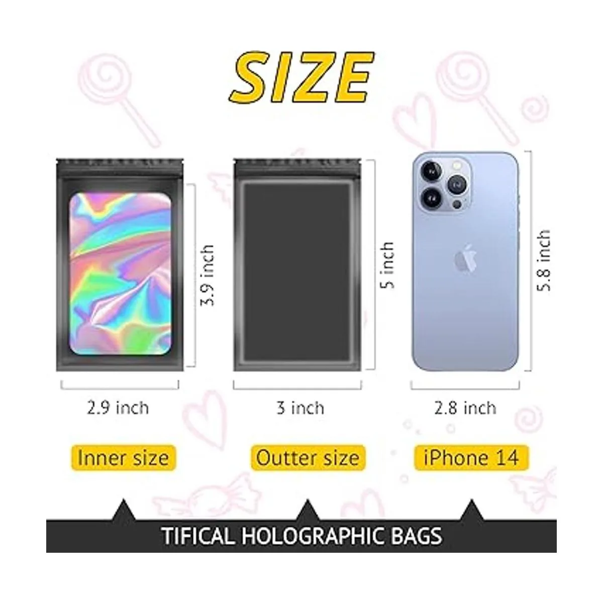 TIFICAL 100 bolsas holográficas para pestañas, uñas a presión, dulces, bolsas pequeñas, bolsas de muestras a prueba de olores para joyas, bolsas resellables para pequeñas empresas, bolsas de almacenamiento de alimentos