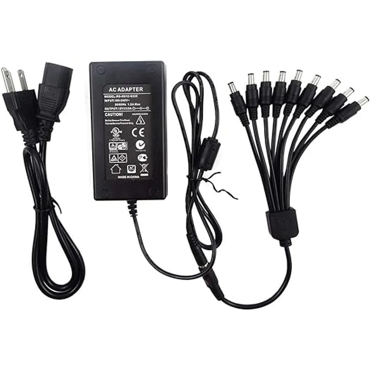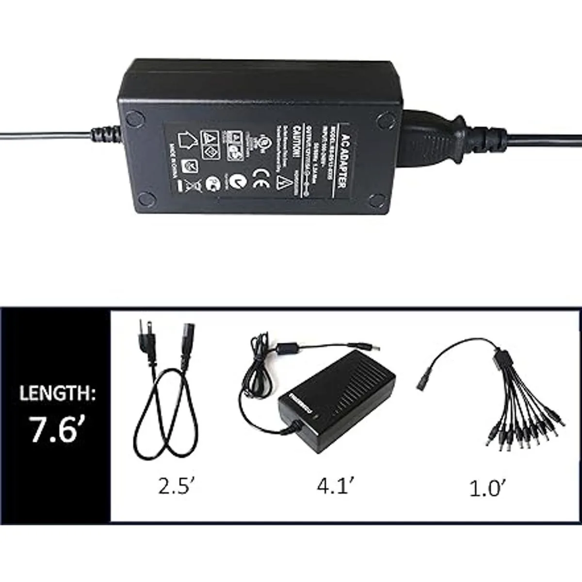 Esta fuente de alimentación de cámara de seguridad de 12 V 5 A y cable divisor de alimentación de 9 vías puede alimentar hasta 8 cámaras de seguridad analógicas estándar, AHD y HD CCTV que funcionan bajo 60 W 60 W.