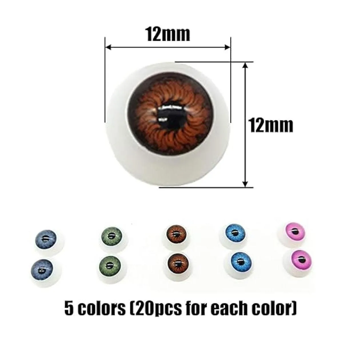 TIHOOD 100 unidades caja de 0.472 in de ojos de muñeca mitad redonda de acrílico para bricolaje, muñeca, oso, manualidades, Halloween