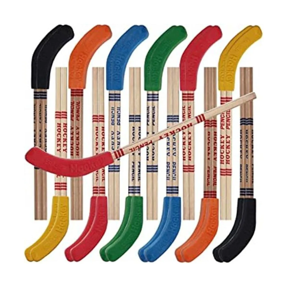 TIHOOD 24 lápices y borradores de hockey Suministros de fiesta temática deportiva de palo de hockey de 9 pulgadas, divertidos lápices geniales para fanáticos del hockey, estudiantes, rellenos de calcetines y bolsas de regalos, regalos de fiesta de cumpleaños