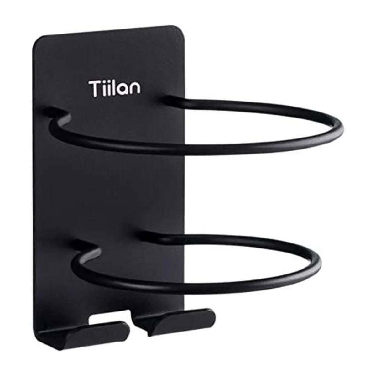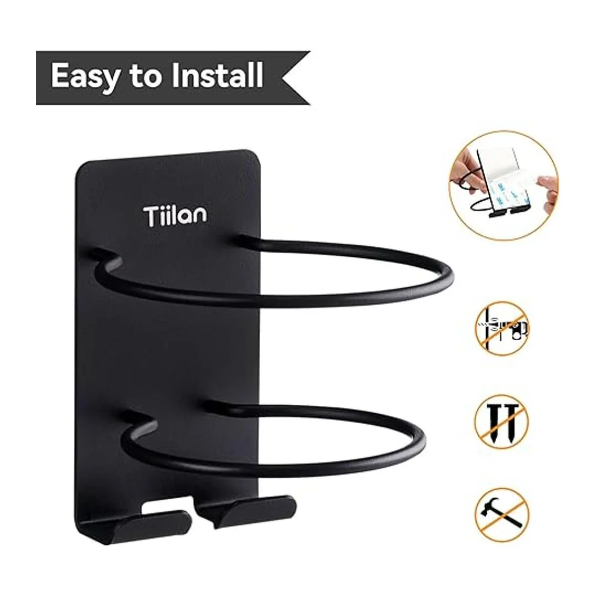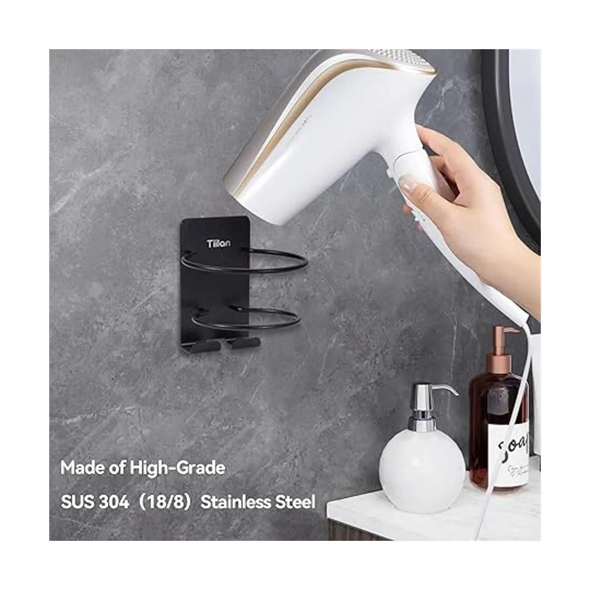 Tiilan Soporte para secador de pelo, montaje en pared, autoadhesivo, acero inoxidable SUS 304, organizador para secador de pelo, color negro