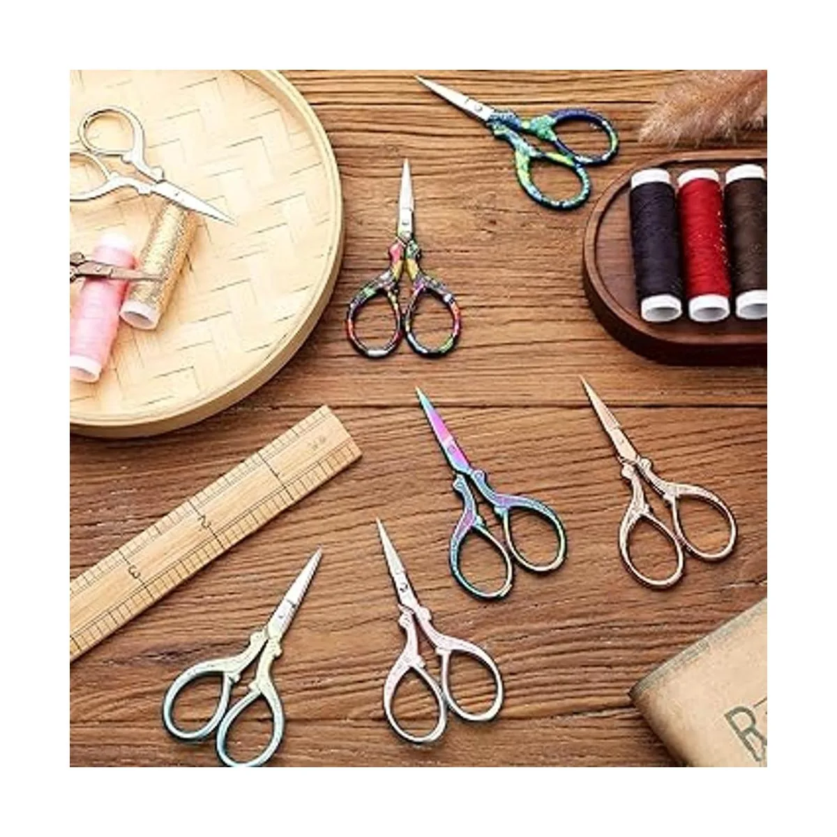 Diseño exquisito: las pequeñas tijeras de costura están diseñadas con muchos patrones y colores exquisitos, incluyendo oro, plata brillante, titanio de color, oro rosa, figura azul y blanca, flores coloridas, que están disponibles para que elijas de acuerdo a tus pasatiempos