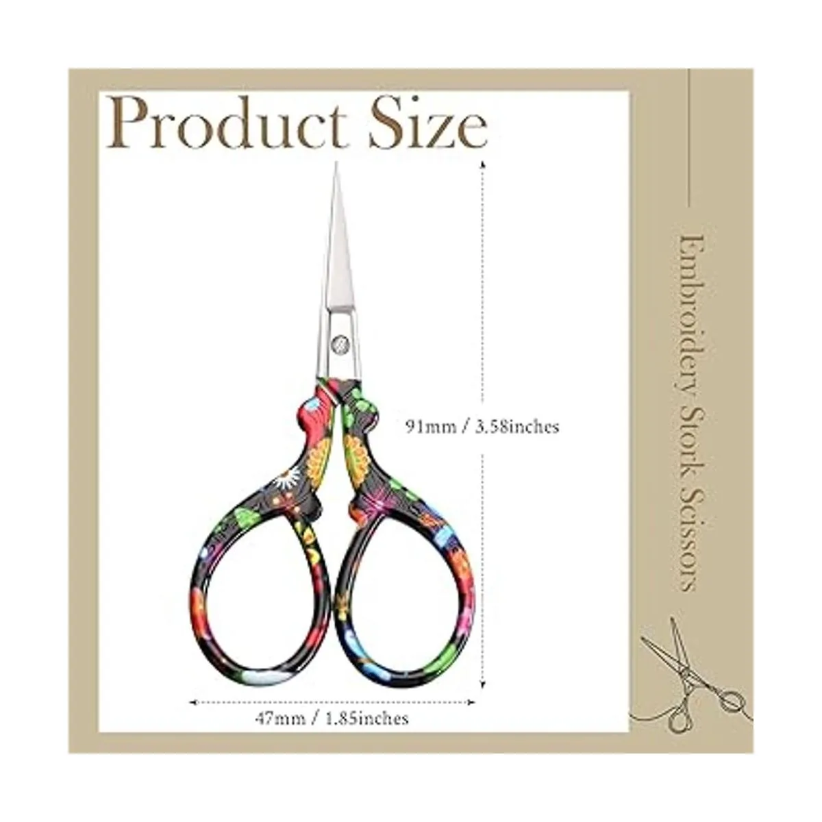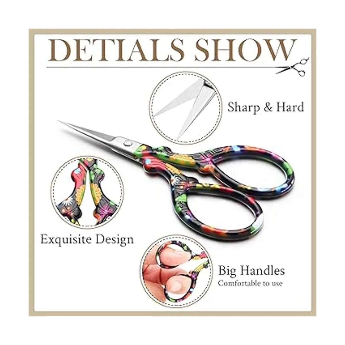 Tijeras de bordado de acero inoxidable de 3.6 pulgadas, tijeras de costura pequeñas de punto de cruz, tijeras doradas, herramientas de costura impresas de flores, herramienta de costura para manualidades colores modernos, 10 piezas