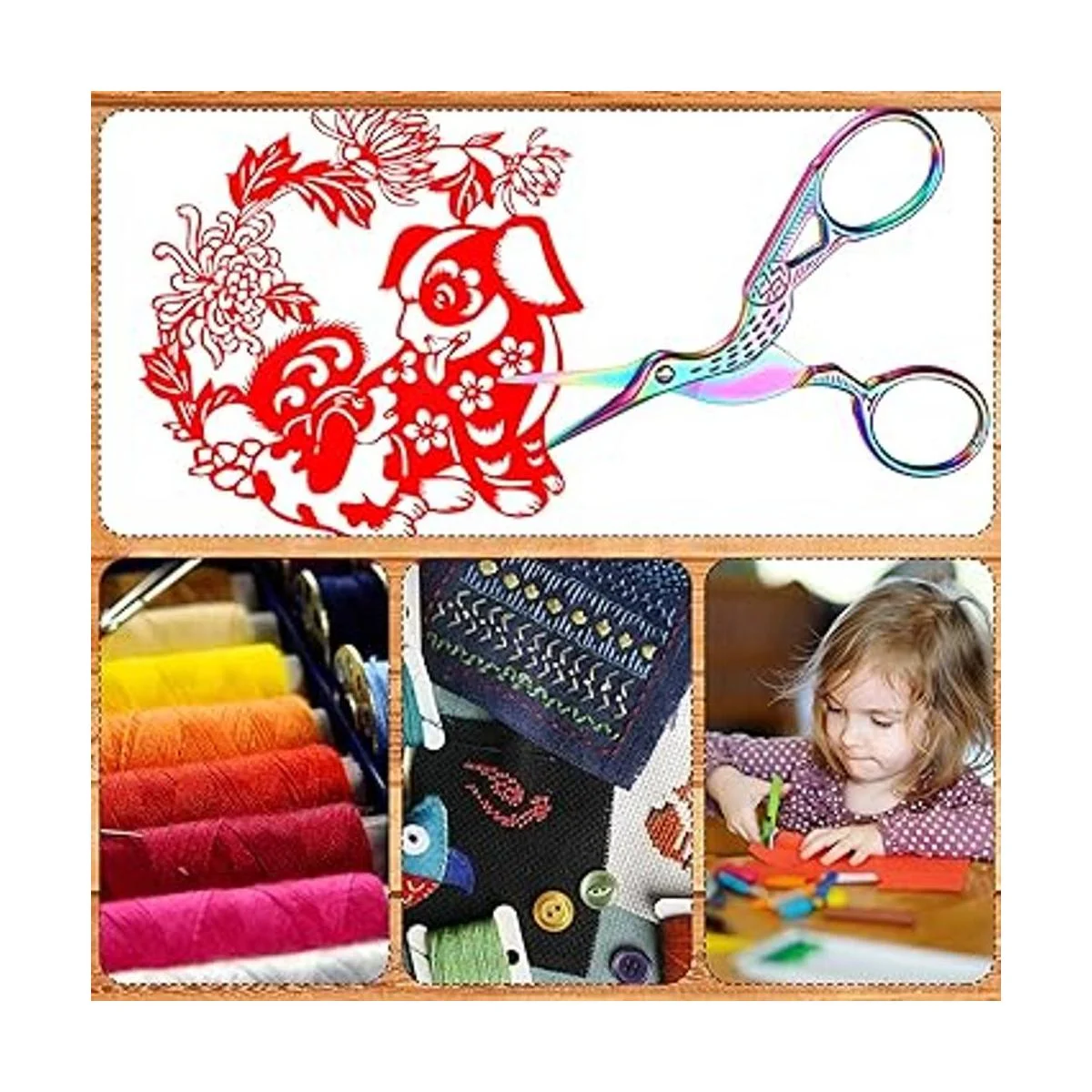 Amplio uso: estas tijeras de tocador de herramientas de bricolaje son adecuadas para usar en diferentes proyectos de bricolaje, que se pueden aplicar para cortar papel, línea ligera, cartón, cinta, fotos, tela y otras cosas, adecuadas para bordado, costura, manualidades a mano, costura, costura, patrones de corte