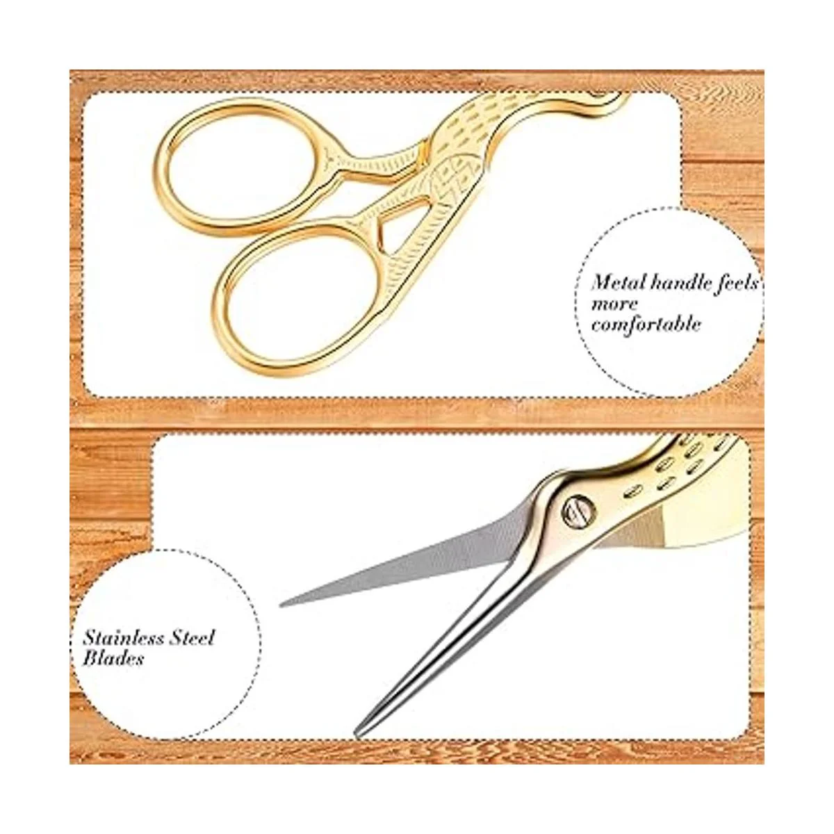Diseño cuidadoso: nuestras tijeras clásicas de acero inoxidable están diseñadas en forma de grúa, conveniente para agarrar, reducir la fatiga de la mano y los bordes puntiagudos, pueden cortar cosas rápida y sin esfuerzo, lo que te ofrece una experiencia cómoda