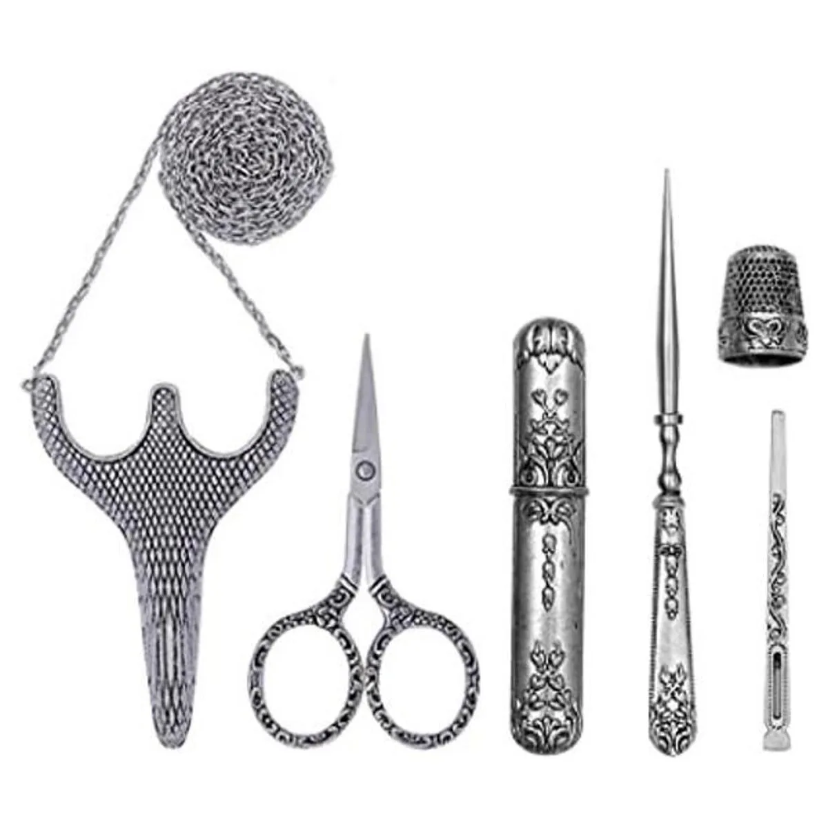 Tijeras de bordado, tijeras de seguridad de acero inoxidable, cortador de hilo con funda, estuche de aguja de costura, punzón, dedal para costura, corte, trabajo de arte, bordado, costura