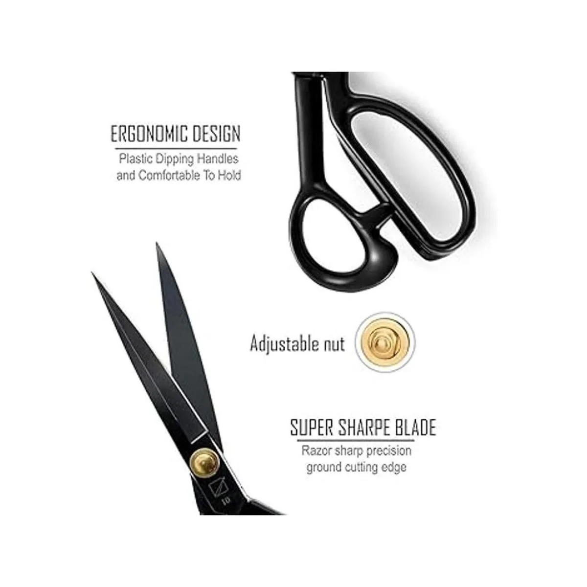 Tijeras de costura, profesional de 10.0 in, tijeras de confección de tela, corte afilado para manualidades, cuero, confección, sastrería, alteración negro, diestro