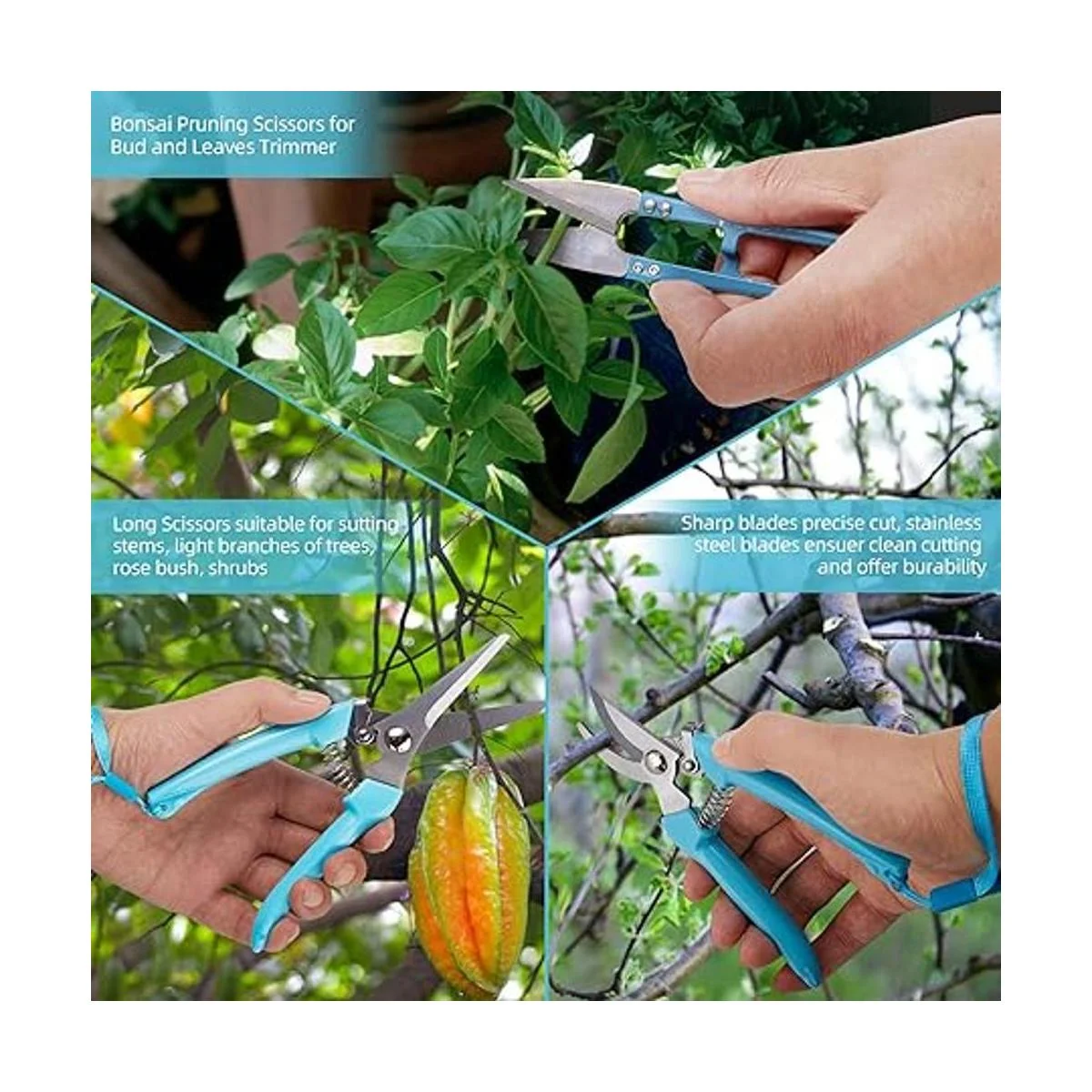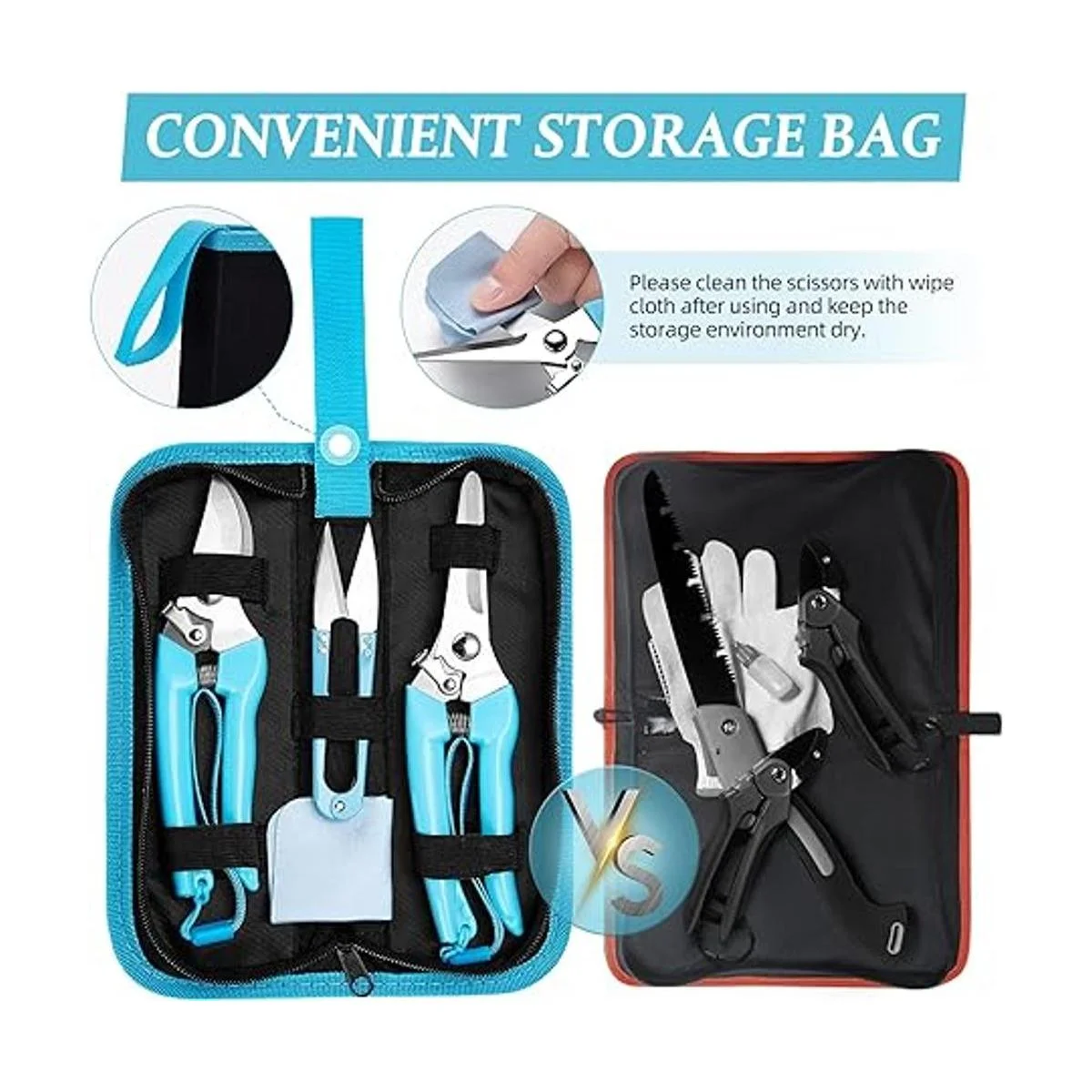 Un juego satisface todas tus necesidades: después de nuestro análisis detallado de la demanda del mercado, hacemos este juego de tijeras de jardín. Puedes obtener 1 tijeras de podar de derivación de jardín, 1 podadora de mano de hoja recta, 1 tijeras de corte bonsái, 2 correas de mano, 1 paño de limpieza, 1 bolsa de almacenamiento. Nuestro juego de herramientas de jardín está listo para abordar todas tus necesidades de recorte y moldeo para tus flores, macetas, verduras y pequeños jardines. Prepara tus plantas de jardín e interior para una mejor apariencia.