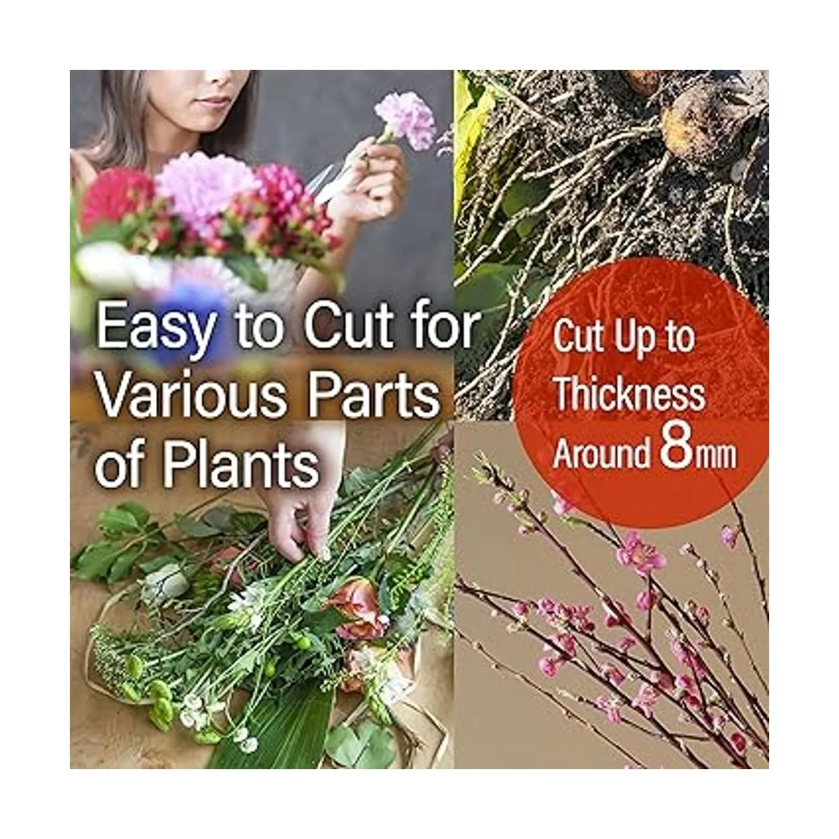 Fácil de usar para principiantes y profesionales La hoja se desliza en las ramas y hojas, lo que te da una agradable nitidez. El mango, que es particular sobre la facilidad de uso, tiene un anillo curvado grande y suave, por lo que es fácil de agarrar y menos cansado.