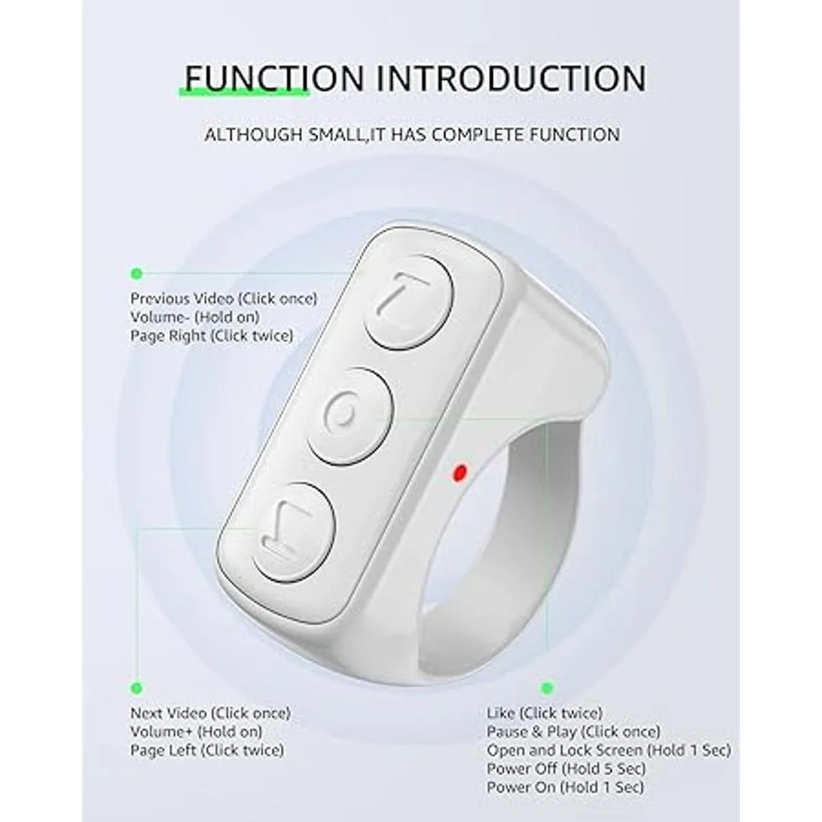 TIK Tok Volteador inalámbrico con control remoto Bluetooth, control de desplazamiento Tiktok, recargable con diseño de anillo para iPhone, Android, iPad, teléfono celular blanco