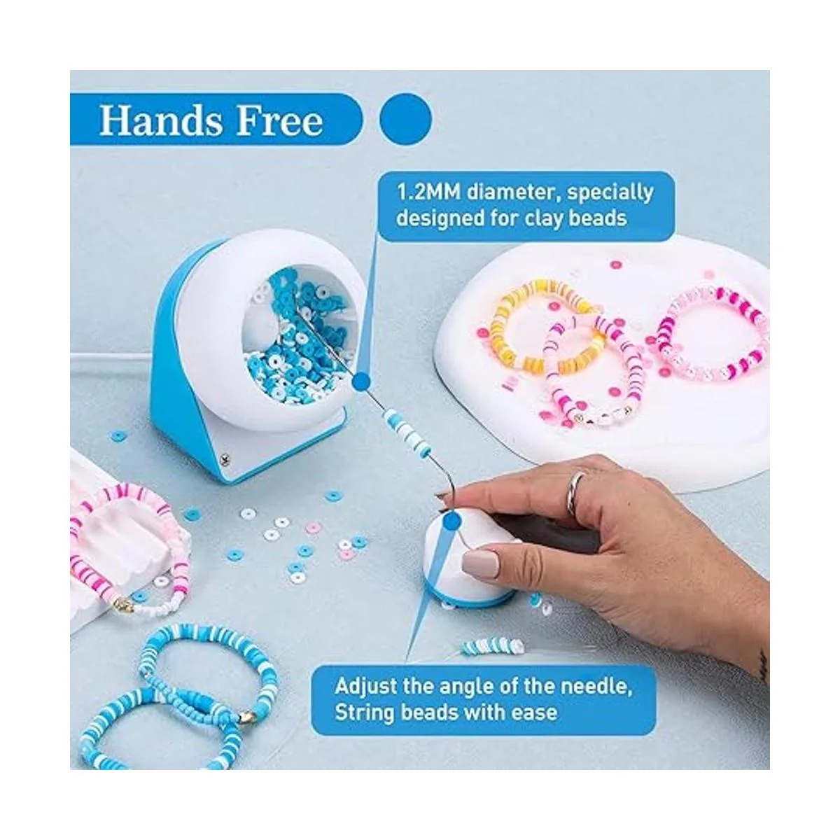 Fácil operación: simplemente ajusta el ángulo del cuenco y la base de la aguja, puedes liberar tus manos y esperar a que la máquina se abalore automáticamente. Viene con un cable USB de 4.6 ft, lo suficientemente largo como para usar en cualquier lugar. Puedes obtener fácilmente la habilidad de cuentas consultando las instrucciones o videos