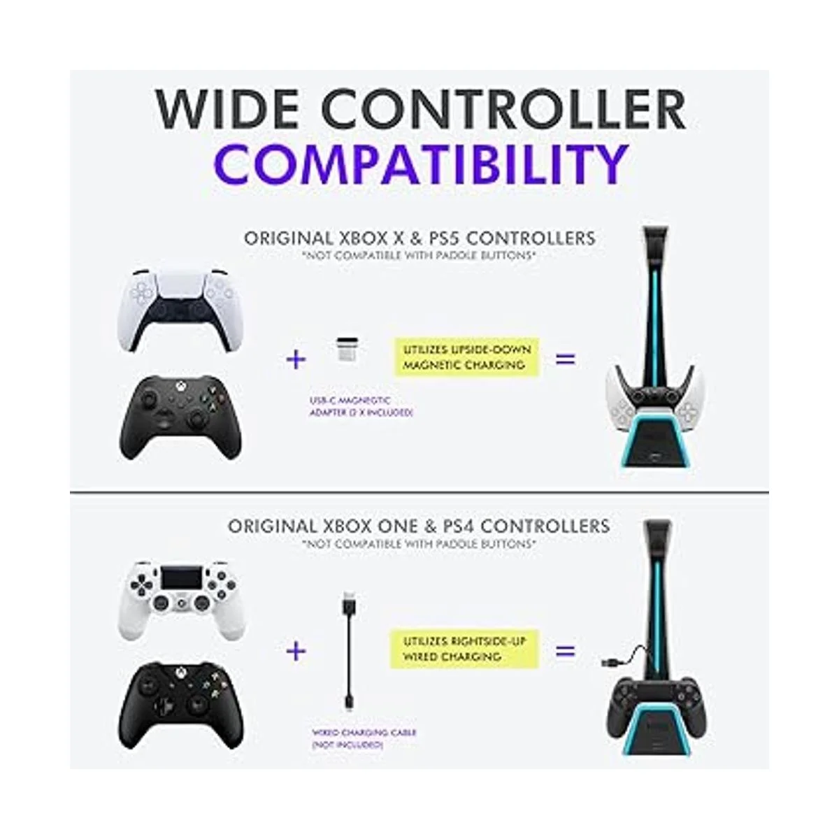 Pantalla y carga al mismo tiempo: simplemente conecta el adaptador magnético USB C a tu controlador PS5 o Xbox X S para utilizar la base de carga. Funciona con controles remotos de generación anterior, pero requiere carga por cable.