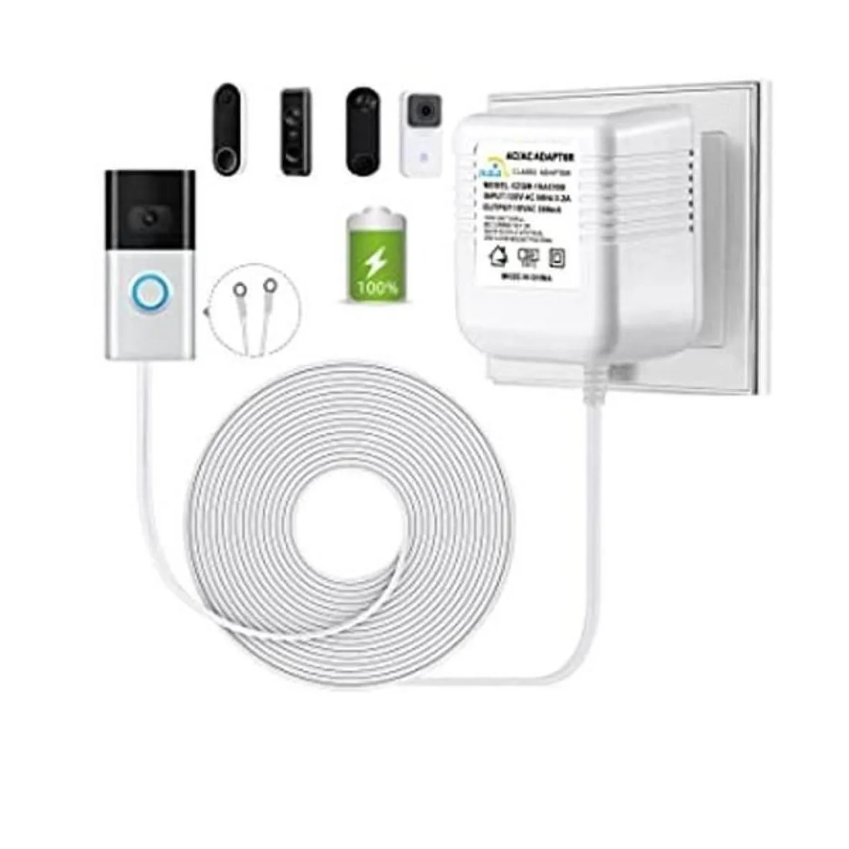 Timbre de video transformador de potencia especial, adaptador de corriente de timbre de anillo de 18V500MA, compatible con anillo, Nest, Eufy, Wyze, Arlo Wireless Video Doorbell con cable de 315 pulgadas, blanco