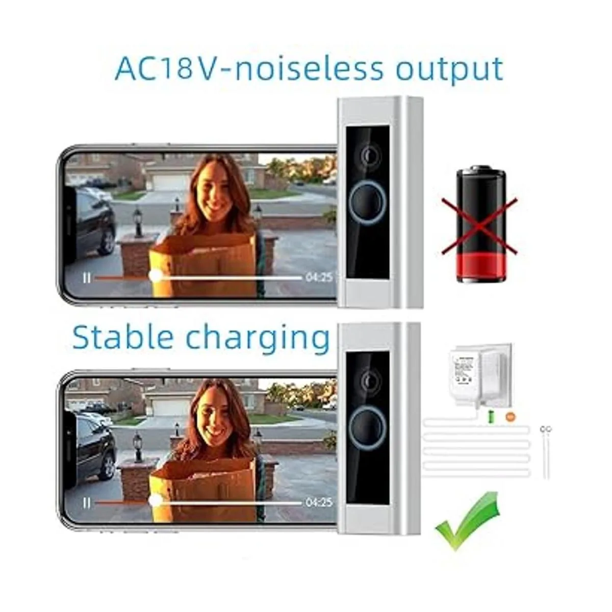 Adaptador de enchufe de anillo: nuestro equipo ha hecho un nuevo diseño de actualización, que resuelve completamente el problema del ruido durante el uso, y la salida estable de 18 V hace que tu timbre visual funcione perfectamente y normalmente