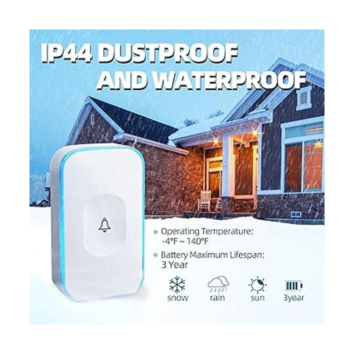Largo alcance inalámbrico: la señal de transmisión de timbres inalámbricos para el hogar es de hasta 1000 pies en un área abierta. Los timbres inalámbricos son impermeables y resistentes al polvo, carcasa de 4 F y 140 F, adecuados para uso en exteriores.