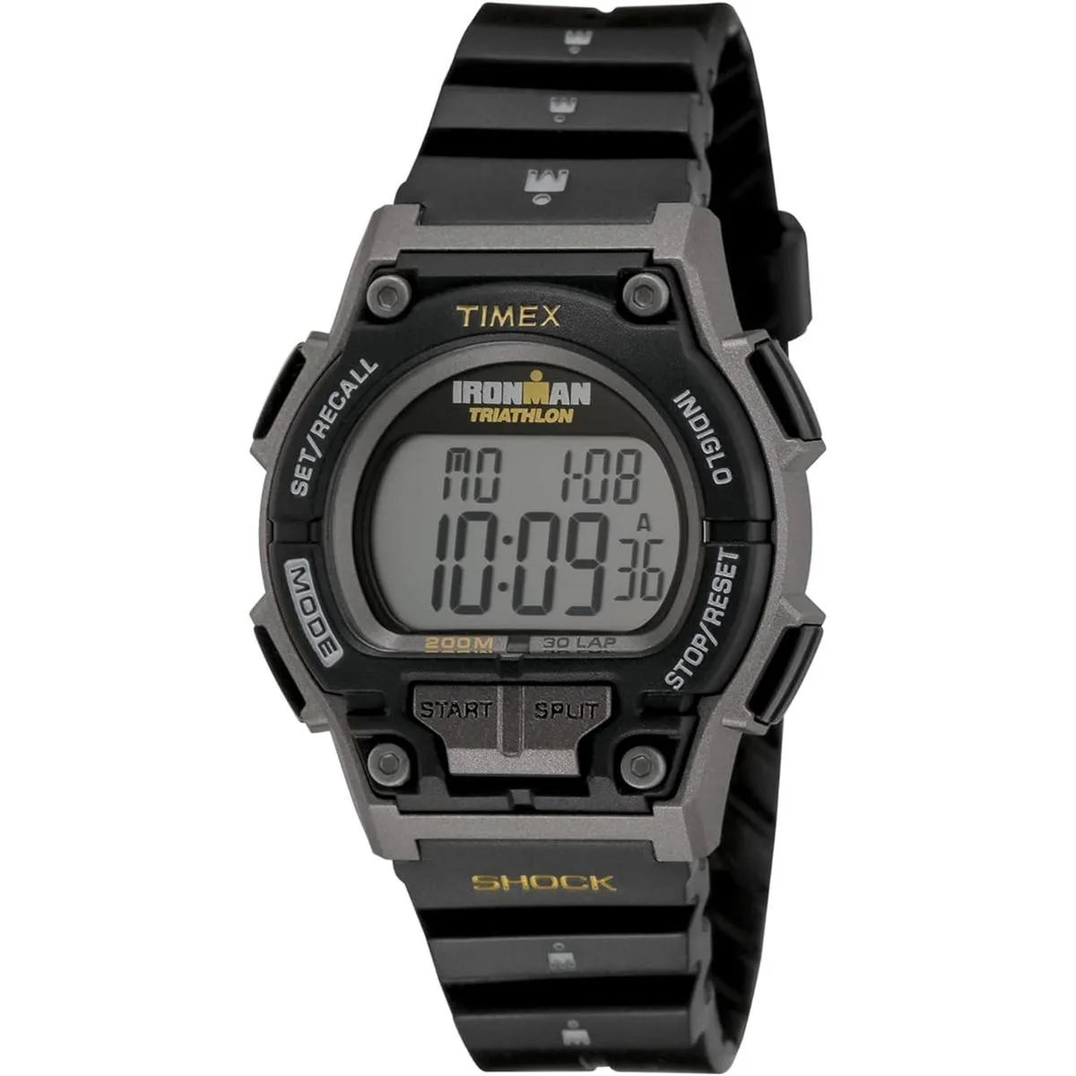 Ironman 30Lap Shock Resistant. Size: FullSize Strap: Shock Resistant color: Black/Yellow A throwback to the 1986 best selling original, but with improved modern functionality and shock resistant durability, the Timex Ironman 30Lap Collection has given the iconic style new life by meeting the demands of todays athletes Features:. Shock resistant to ISO standards INDIGLO nightlight with NIGHTMODE feature 30lap memory recall 100hour chronograph with lap or split option in large digits 99lap counter Onthefly recall of lap or split Top pusher for easy lap and split option 24hour countdown timer with: countdown/stop CS and countdown/repeat CR Daily/weekday/weekend alarm with 5 minute backup 2 time zones Builtin setting reminders Forward or backward setting Waterresistant 200m.