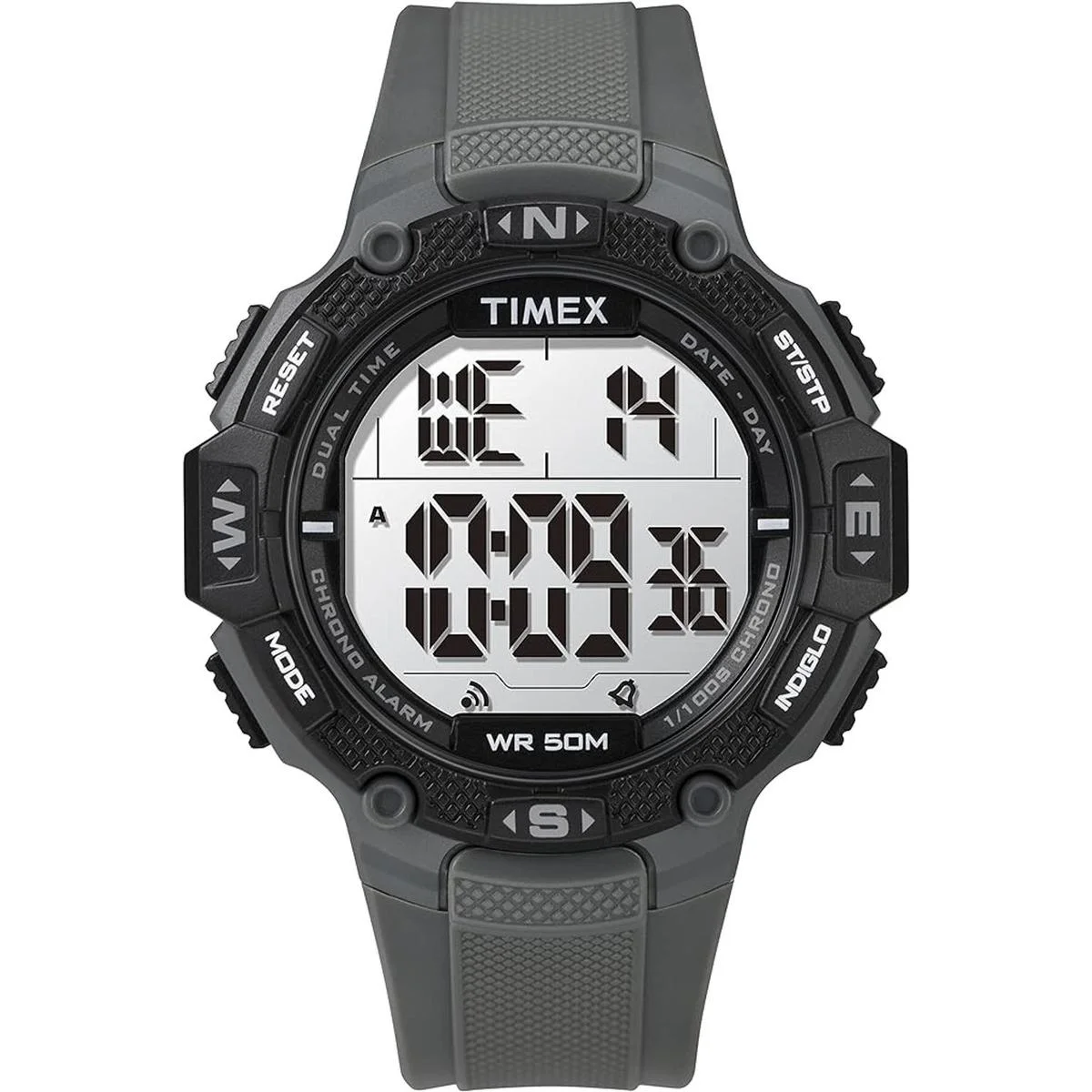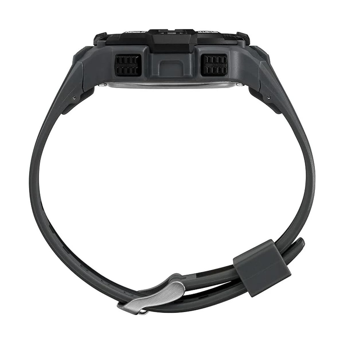 Caja de resina negra de 1.811 in; lente acrílica; pantalla digital gris; esfera de reloj iluminada Indiglo