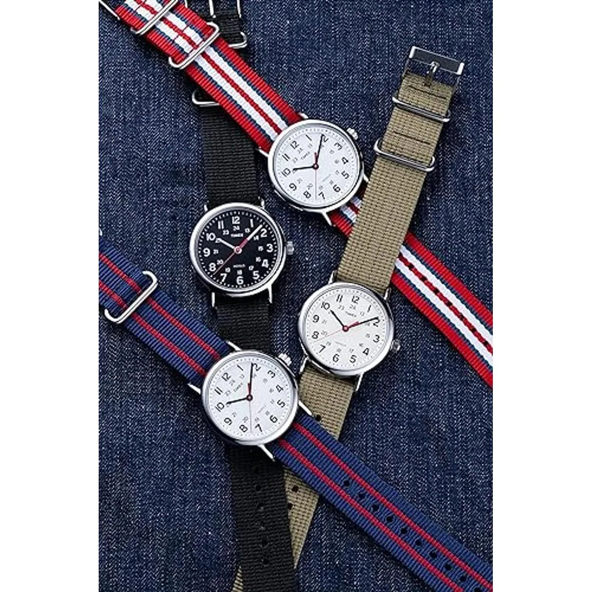 Timex Reloj unisex Weekender de 1.496 in, Negro, Weekender Slip Through Reloj de correa de nailon