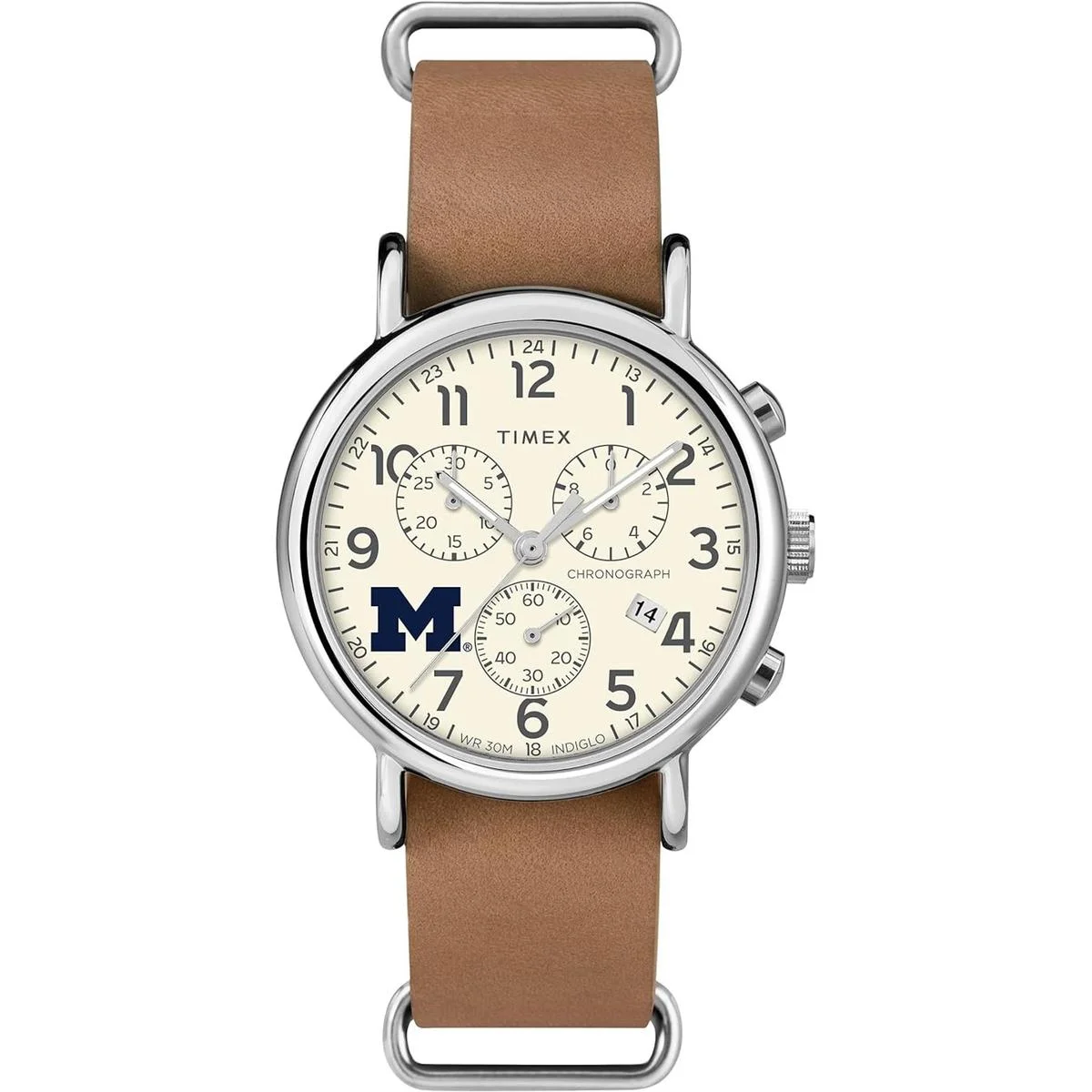 Timex Tribute Collegiate Weekender Chrono Correa de cuero de cuarzo para hombre, 1.575 in