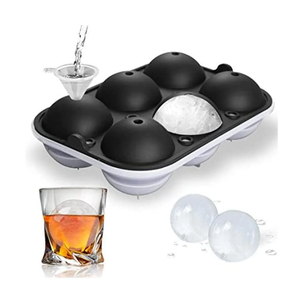 TINANA Molde reutilizable para hacer bolas de hielo de 2.5 pulgadas 6.35 cm, bandeja redonda de silicona de fácil liberación con tapas y embudo para esferas de hielo para whisky, cócteles, borbón