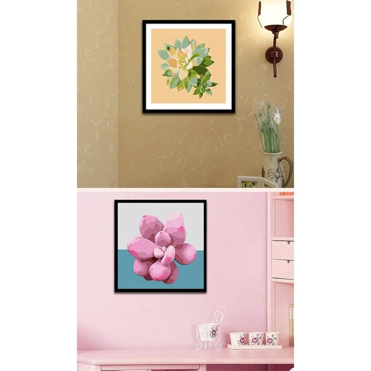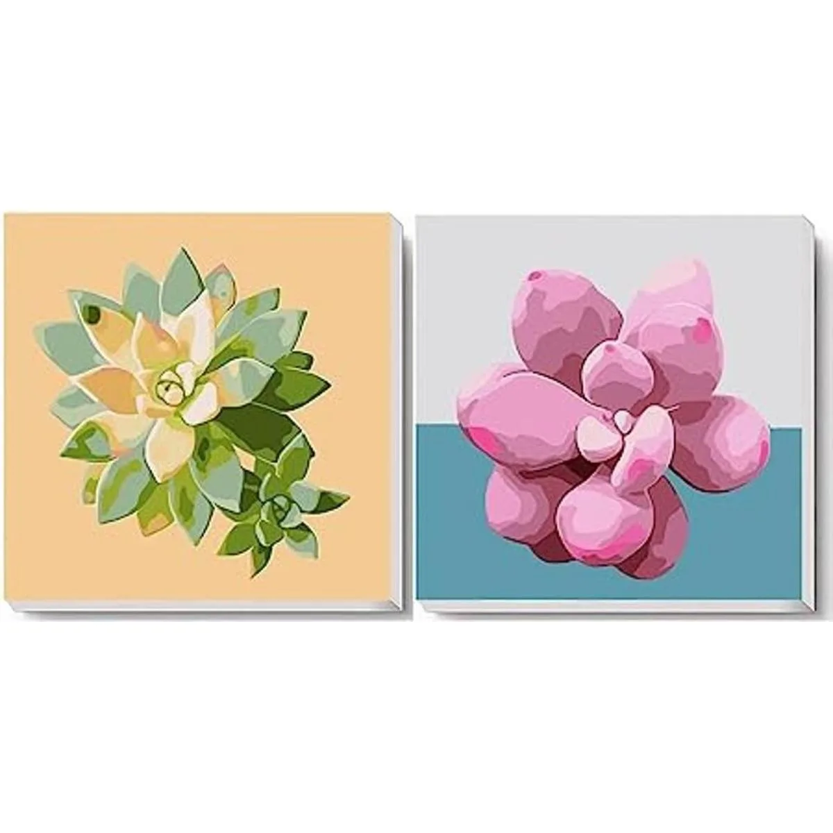 TINDAY Paquete de 2 pinturas enmarcadas por números para adultos, principiantes, niños, pintura de lienzo por números, enmarcadas, pintura acrílica por números, kits de números para adultos, con enmarcado de 8 x 8 pulgadas 2 suculentas