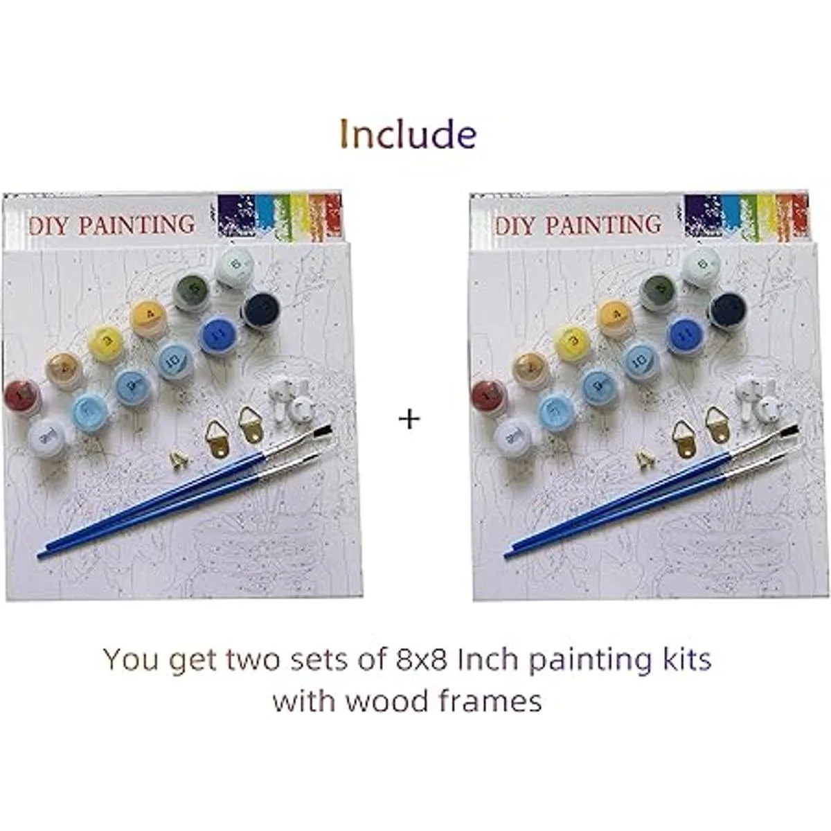 Puedes conseguir Pintura por números para adultos principiantes y niños, paquete de 2 pinturas acrílicas cada uno de 10 x 10 pulgadas lienzo, 2 juegos de pinturas acrílicas, 4 pinceles de embalaje exquisito de regalo con marco