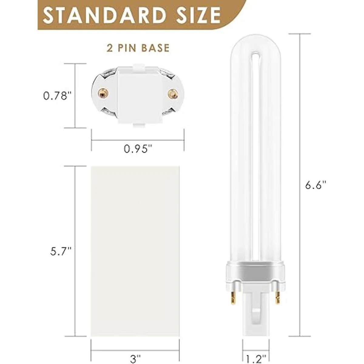 Tamaño estándar: el tamaño de las bombillas 21050: 6.6 x 1.2 x 0.8 pulgadas; el tamaño de las tablas de pegamento: 5.7 x 3 pulgadas.
