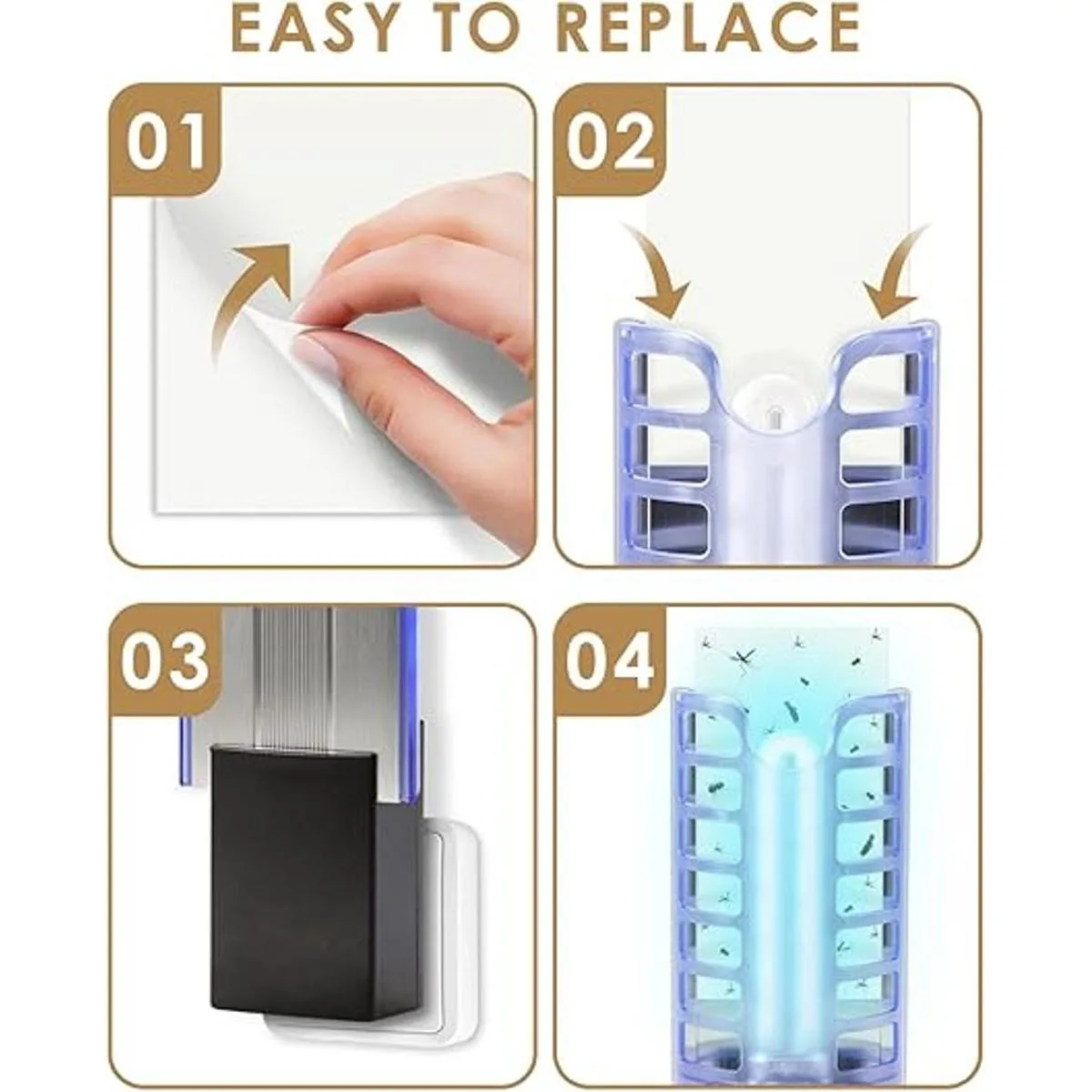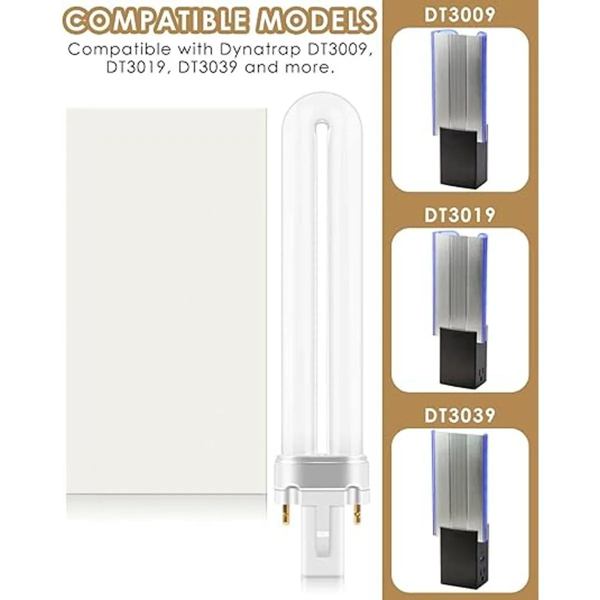 Contenido del paquete: recibirás 4 bombillas 21050 de 9 W y 12 tarjetas de pegamento adhesivas, que son compatibles con Dynatrap DT3009, DT3019, DT3039 y más