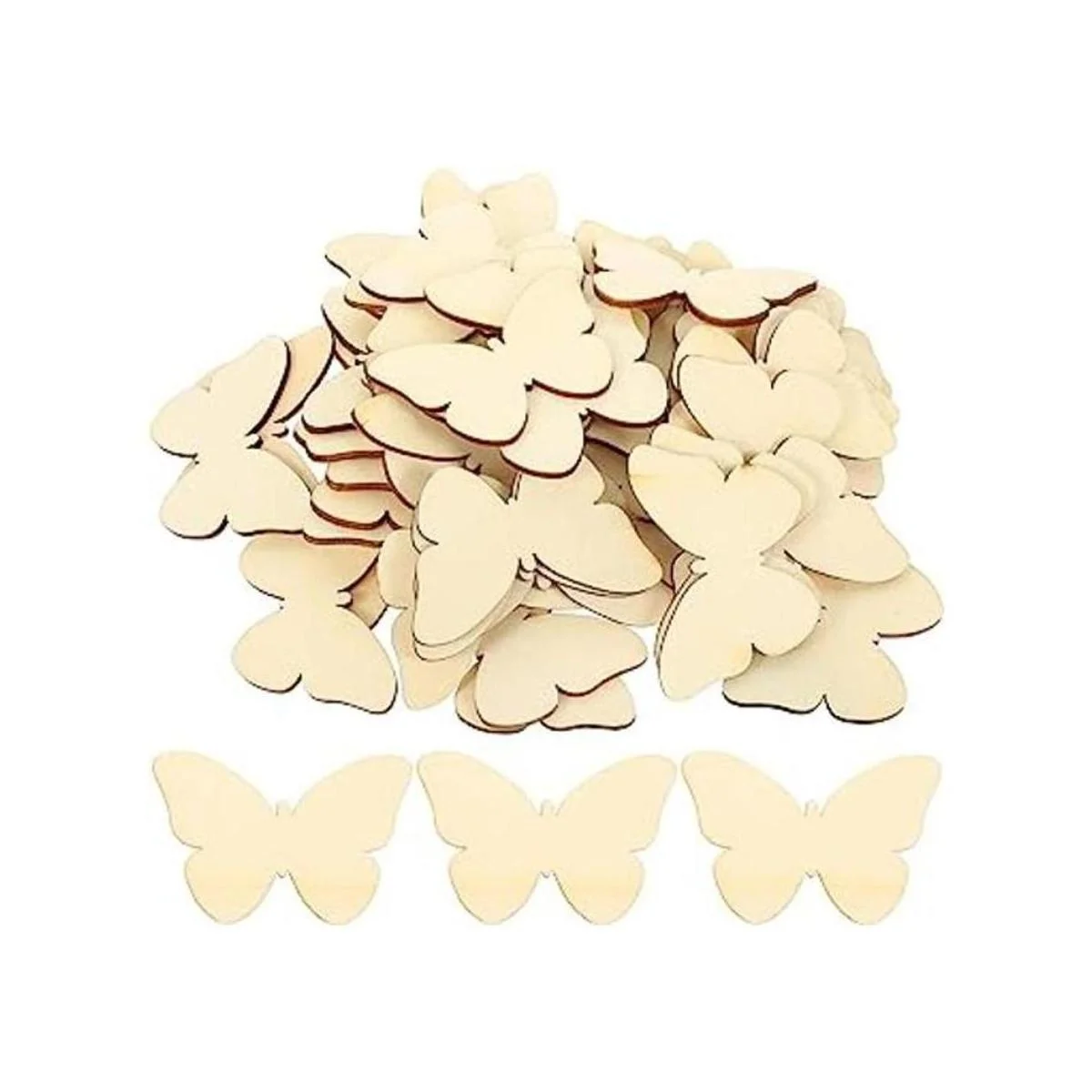 TINKSKY 50 piezas de madera con forma de mariposa en blanco, natural sin terminar, forma de mariposa de madera, Navidad, boda, libro de visitas, Decoupage, árbol familiar, decoración de San Valentín, regalo de bricolaje