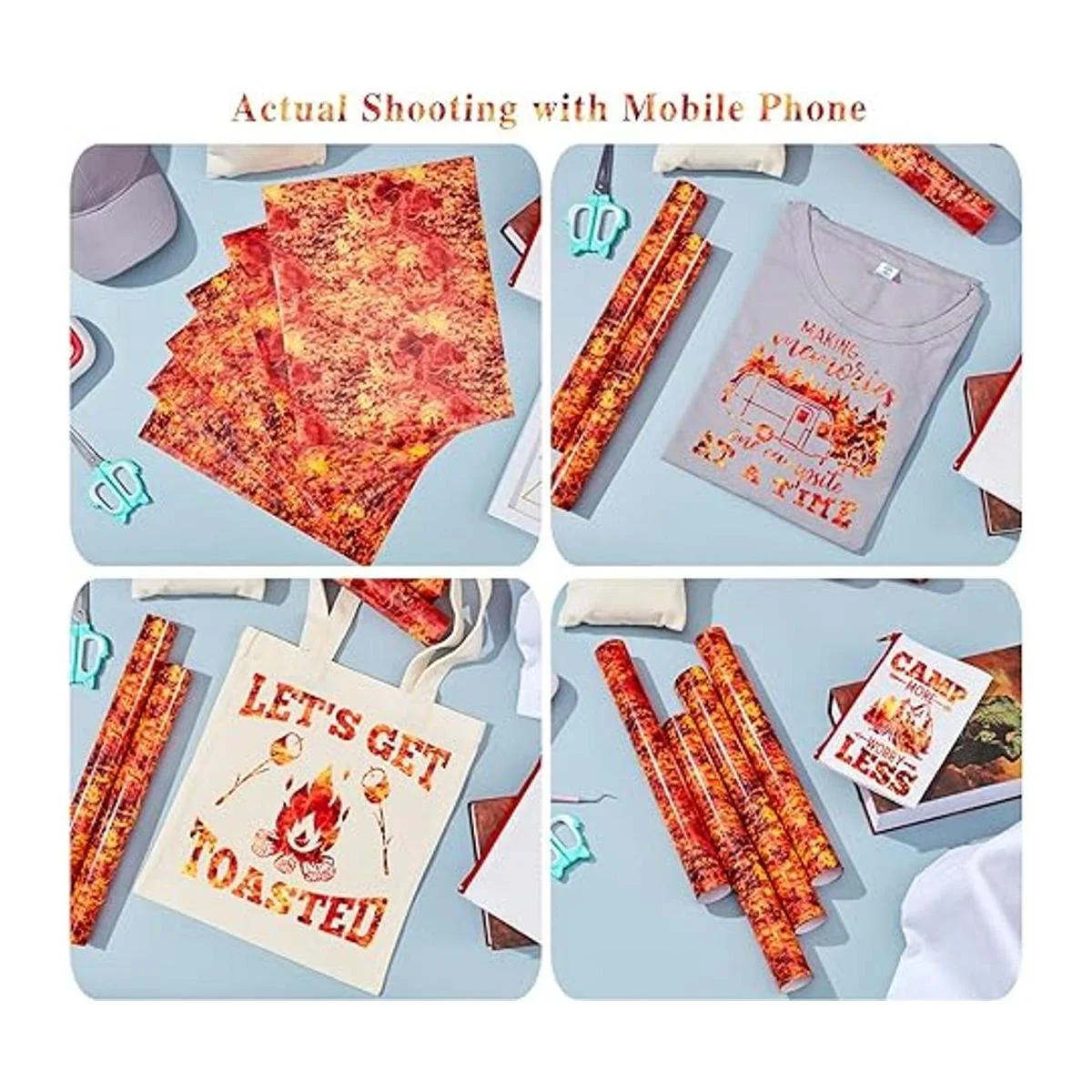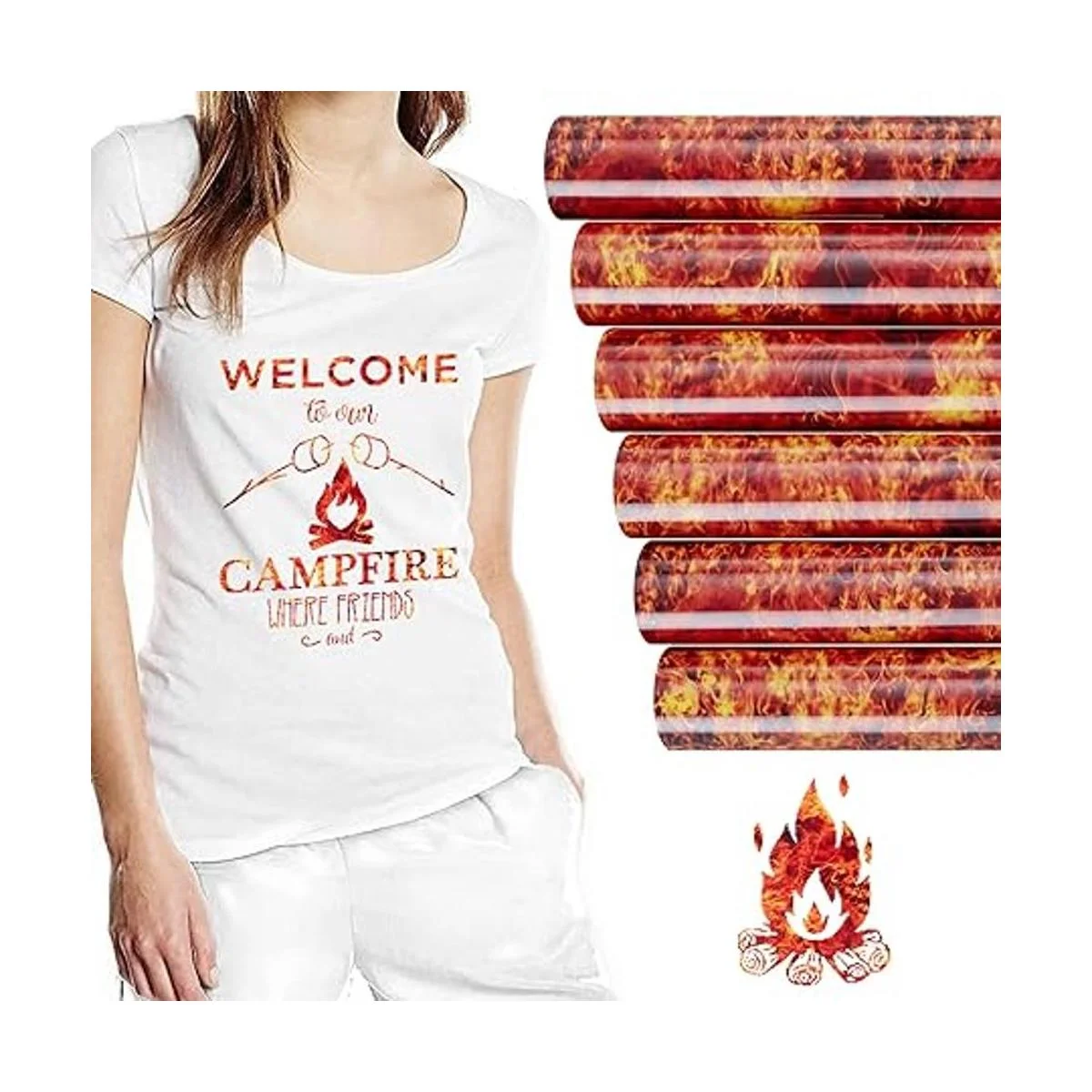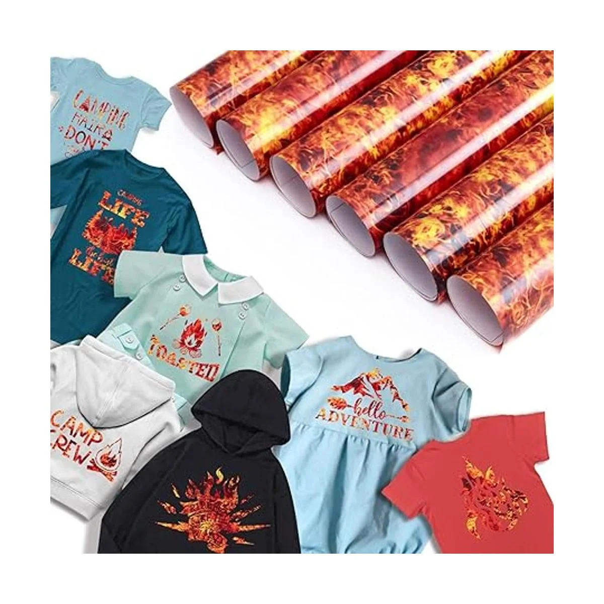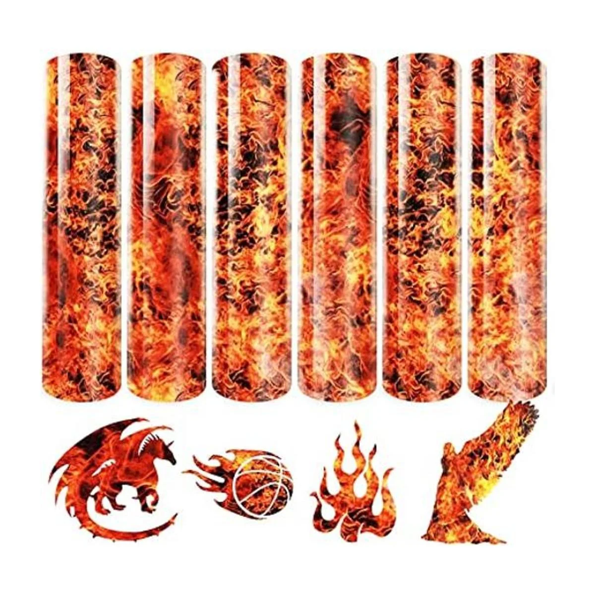Tintnut Flame HTV Vinilo termotransferible termotransferible de 12 x 10 pulgadas, 6 hojas de vinilo HTV de fuego de invierno para bricolaje, camisetas, sombreros, ropa para Cricut Silhouette Cameo