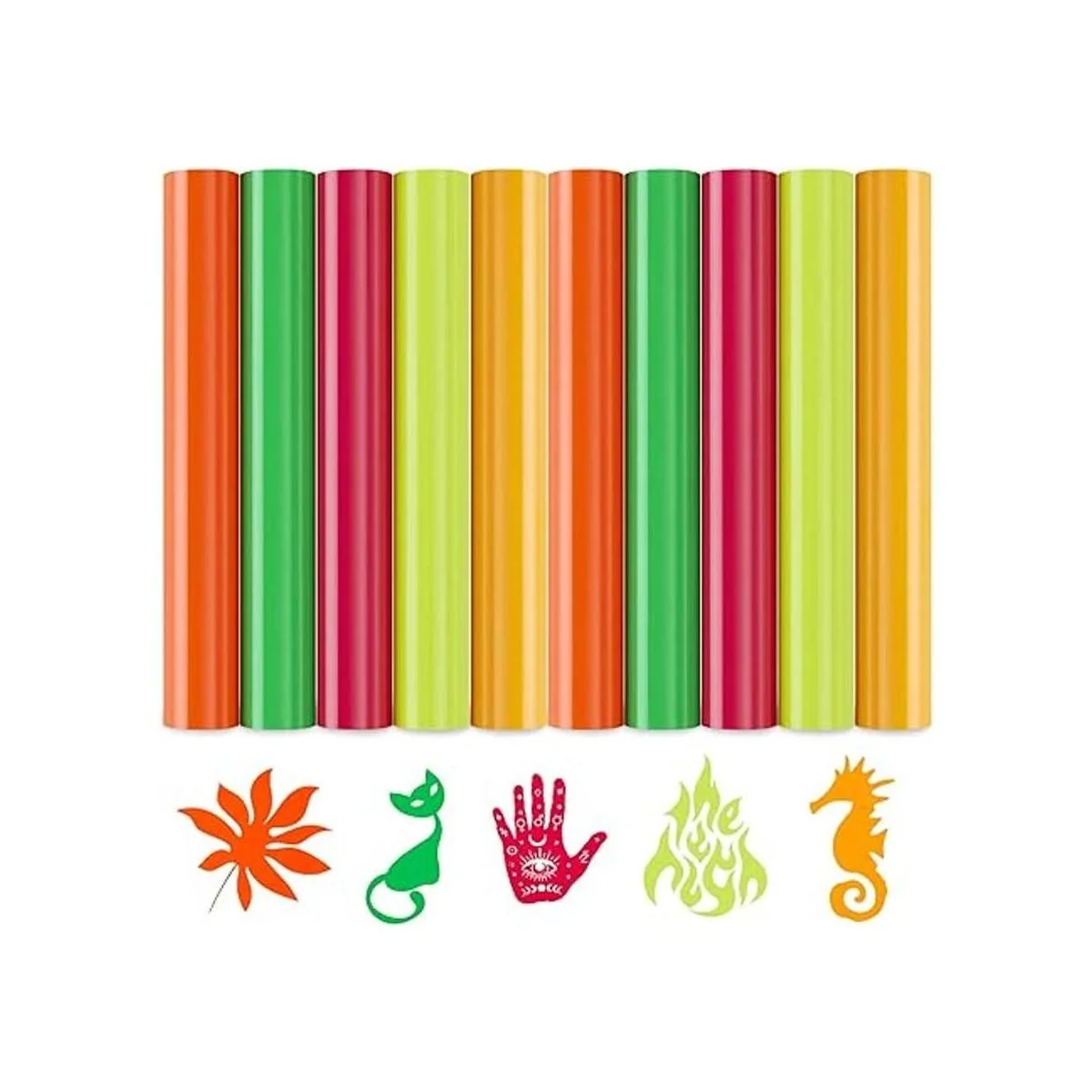 Tintnut Neon PU HTV para camiseta de 12 x 10 pulgadas, 10 hojas de 5 colores surtidos de vinilo de transferencia de calor, paquete de vinilo de transferencia de calor fácil de quitar para camisetas de bricolaje