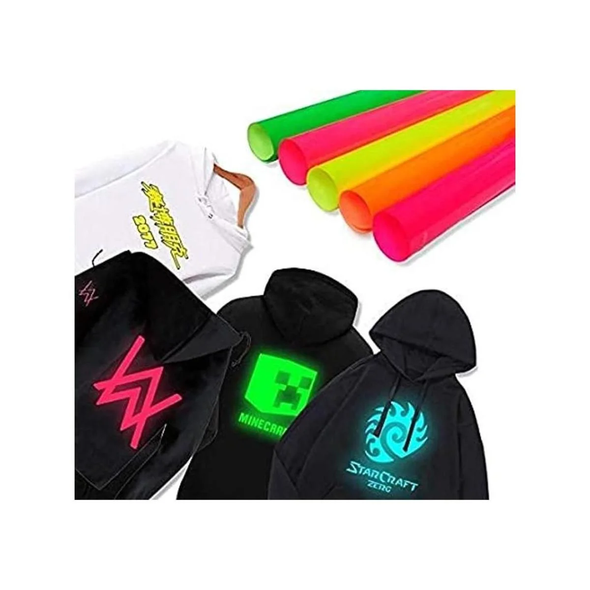 Colores surtidos: nuestra fluorescencia HTV contiene cinco colores: amarillo neón, rosa neón, verde neón, rojo rosa neón, naranja neón. Es durabilidad de lavado y resistencia del color.